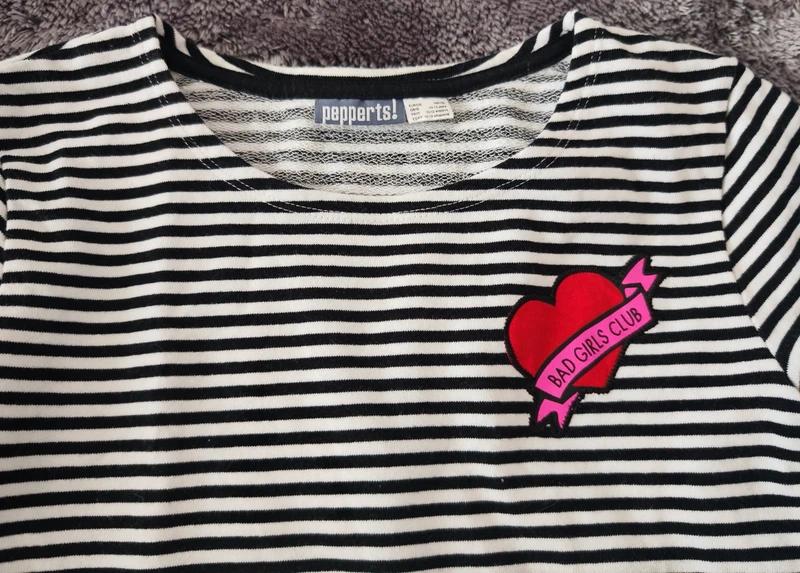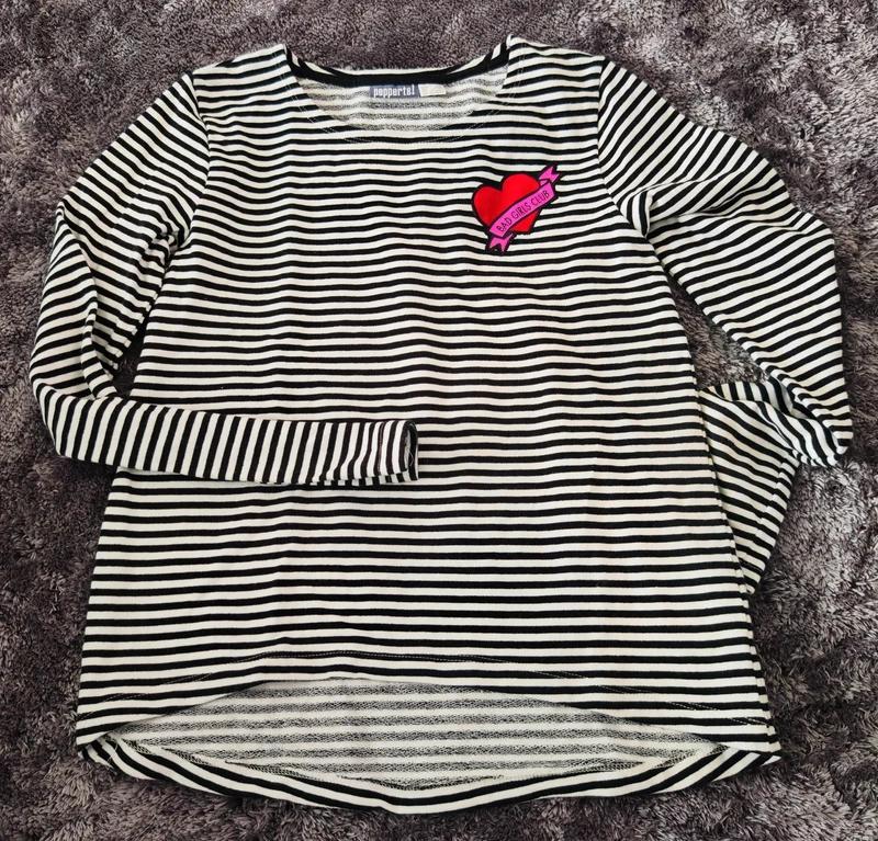Pasik pevnejsie tricko-nie je tenke ,so srdieckom,zadna cast je dlhsia,je v super stave,pekne,pisana velkost 146-152,kludne XS-S