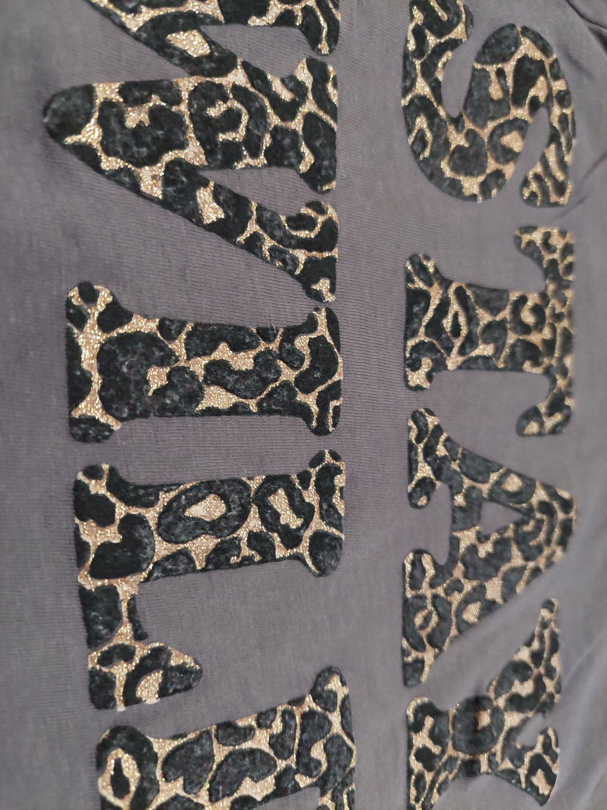 Predám tričko, nosené, motiv mačičky s nápisom MEOW. Nápis sa trbliece na slniečku. Vidno nosenie.