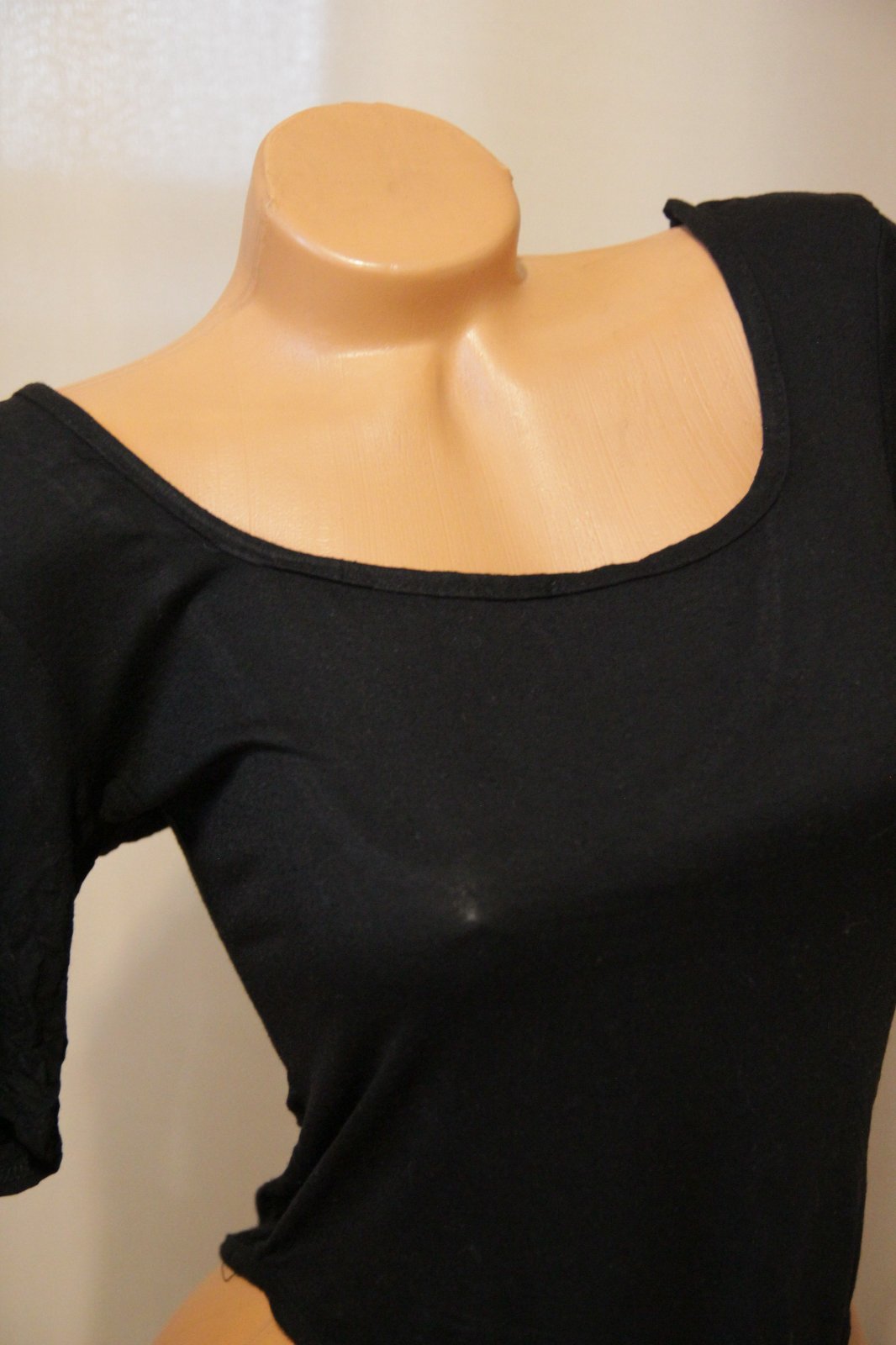 Čierny body top s výstrihom na chrbte. Veľkosť M. Na spodku je mini dierka - nie je to vidieť.