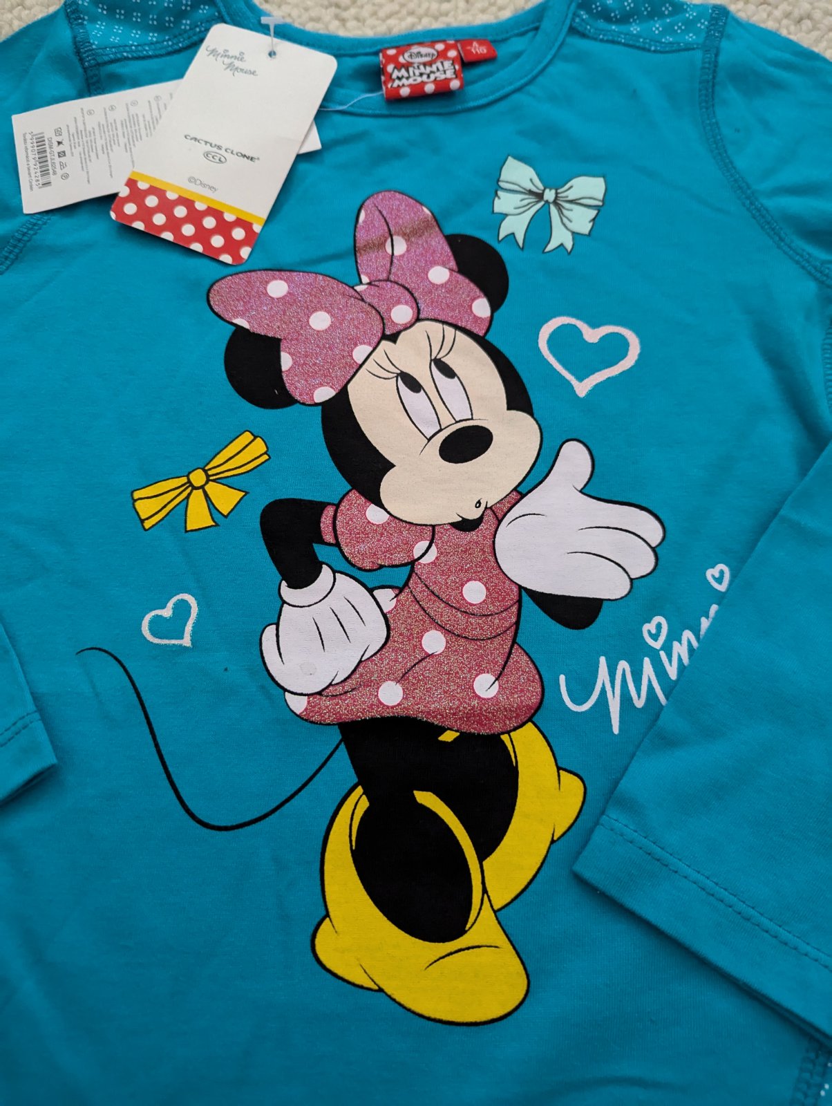Disney Minnie mouse, krásne bavlnené tričko, tričko pre dievča, dievčenské tričko s dlhým rukávom, trblietavé časti, vhodné ako darček, cena 3,50 eur