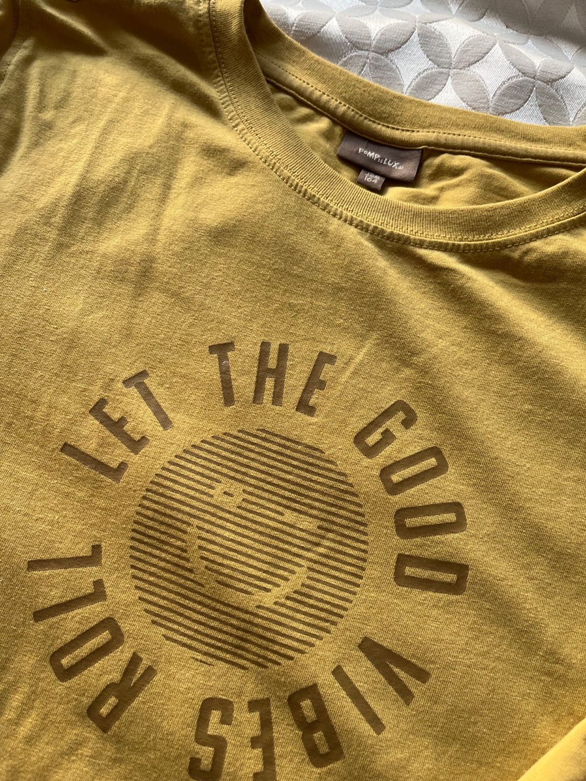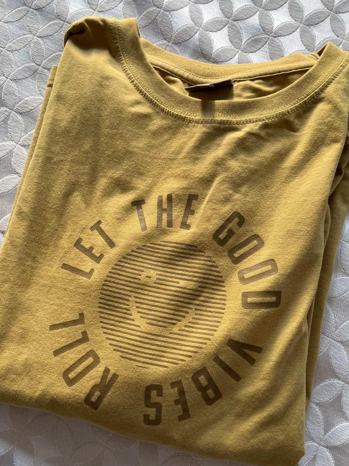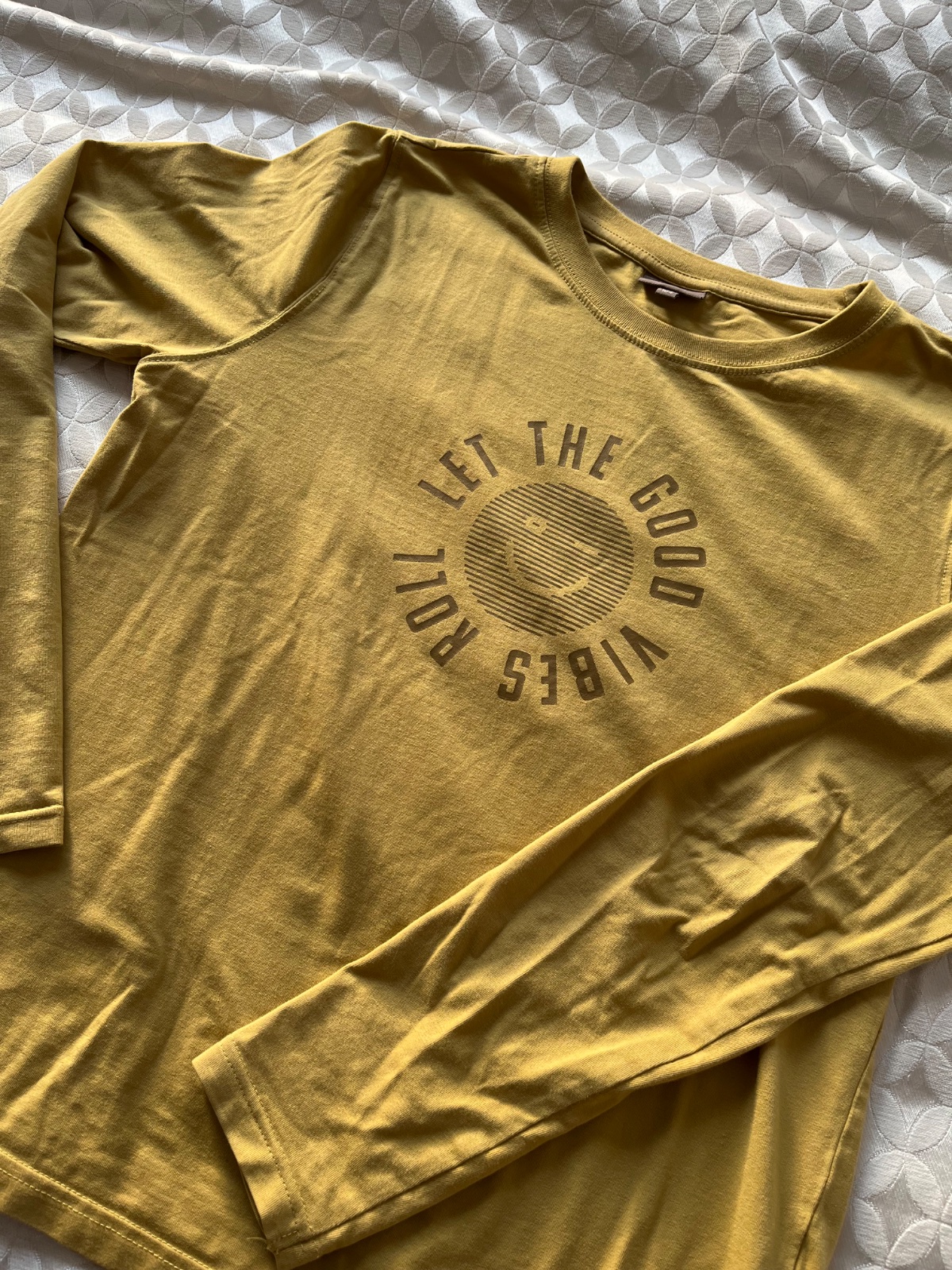 Tricko top stav mal ho mozno raz, 158/164 farba nieco medzi zltou a horcicovou- jemnucky hladky elasticky material- klasika pomp