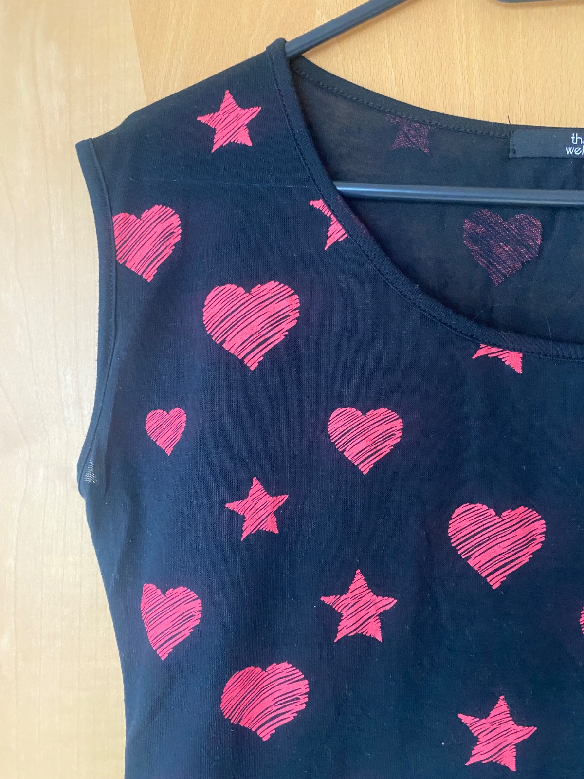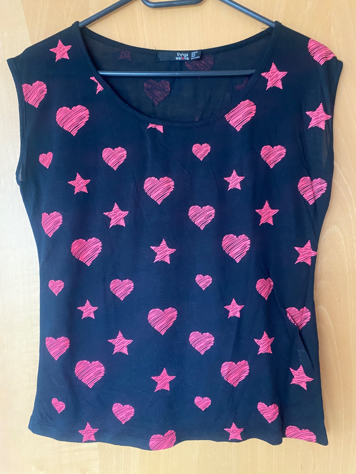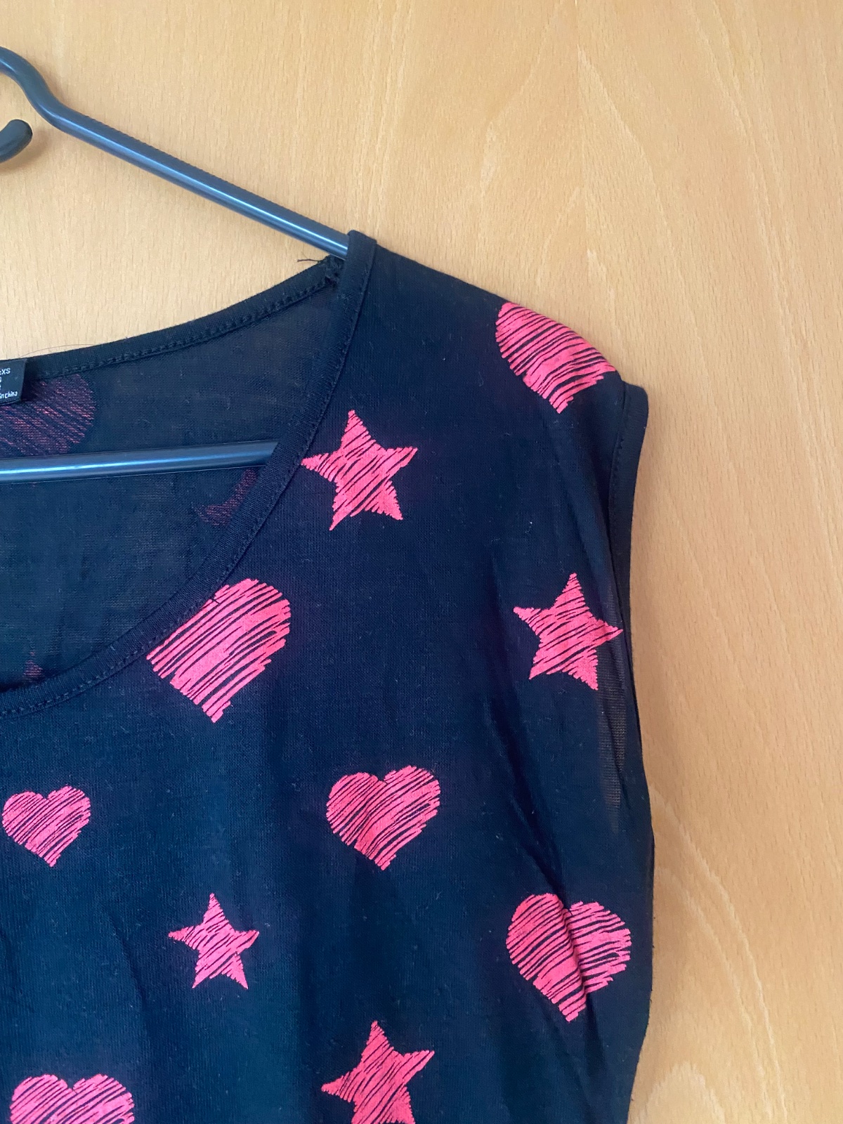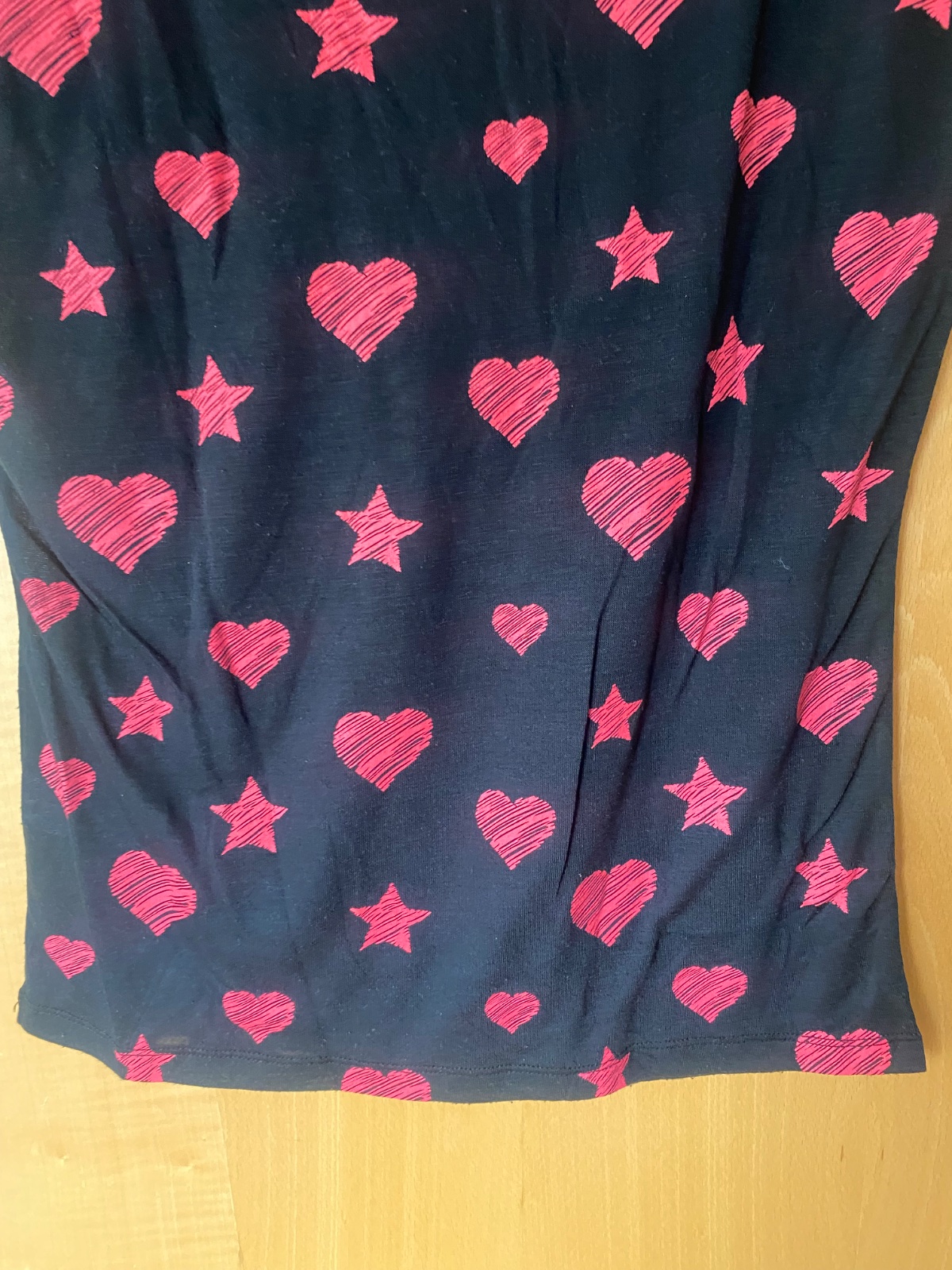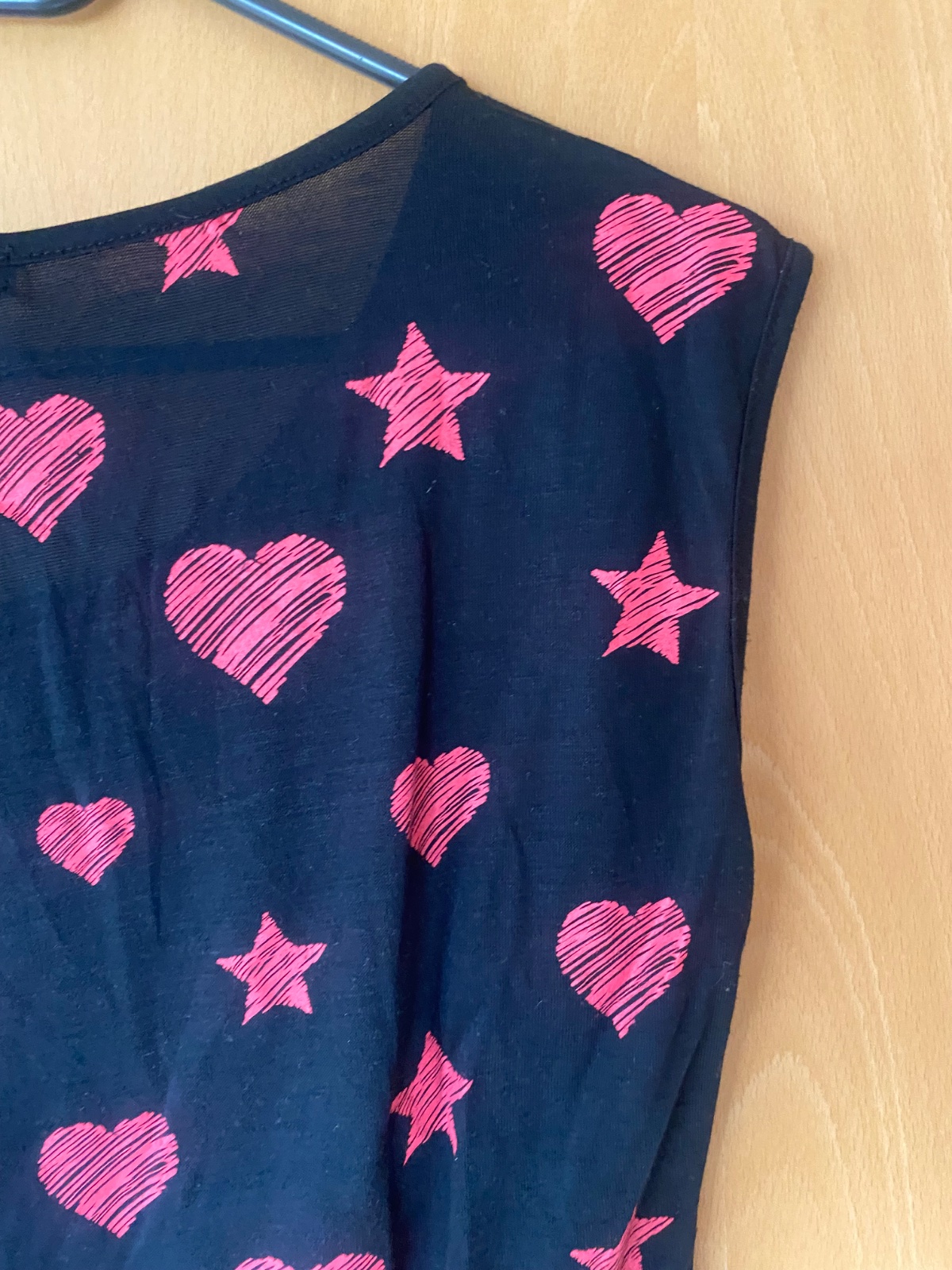 Ružove vzory - srdiecka a hviezdy, voľný strih, rovny, zachovale, dlzka 58cm, obvod hrudnika 93cm, material tenký