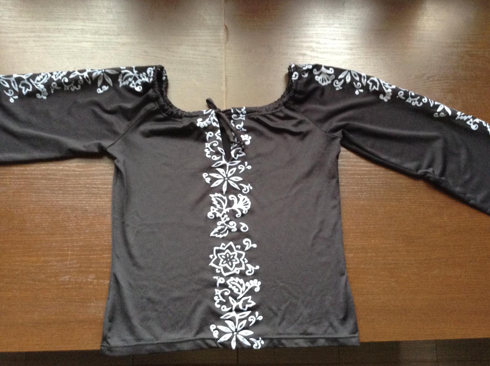 Krásna, čierna tunika zdobená sivým vzorom. veľkosť S, bez poškodenia.