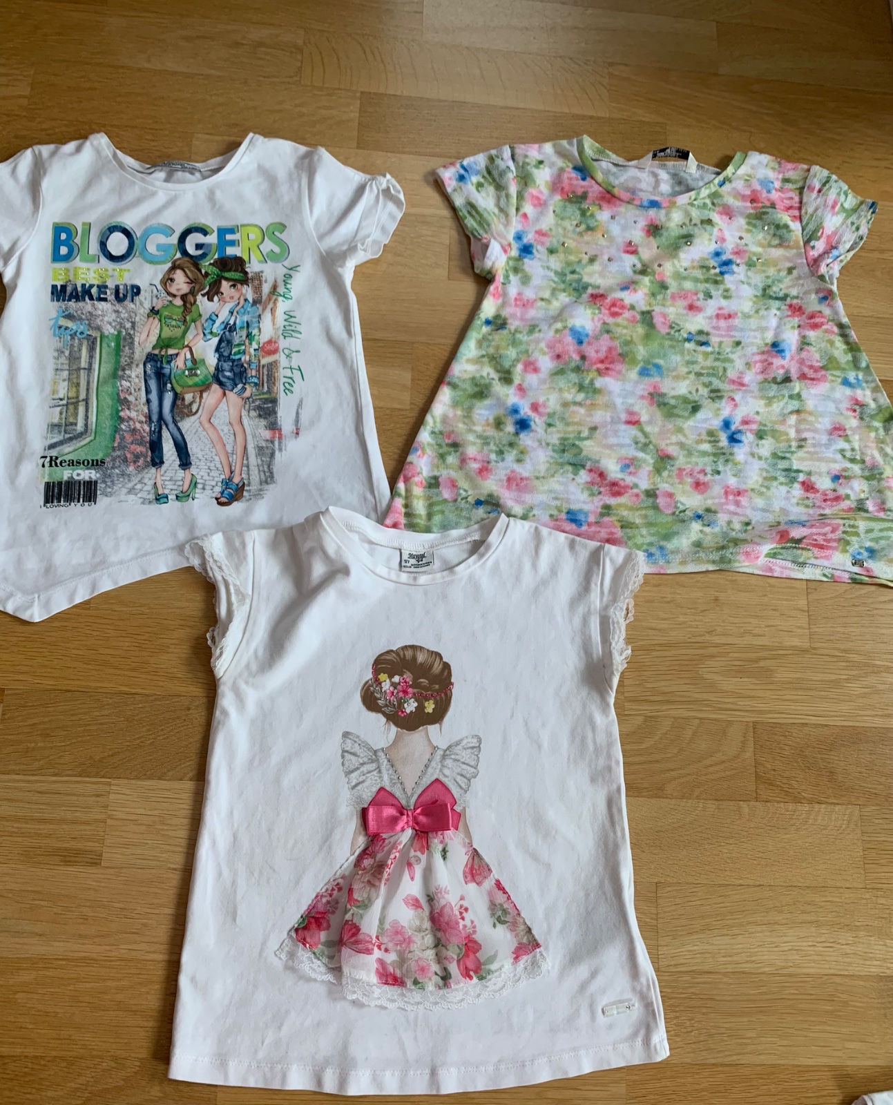 Krasne tričká Mayoral,velkost 122, na 7.rokov vo výbornom stave. Povodna cena jedneho trička bola okolo 16€. Cena spolu. Ku kazdej kupe nad 10€ pridavam darcek rovnakej velkosti
