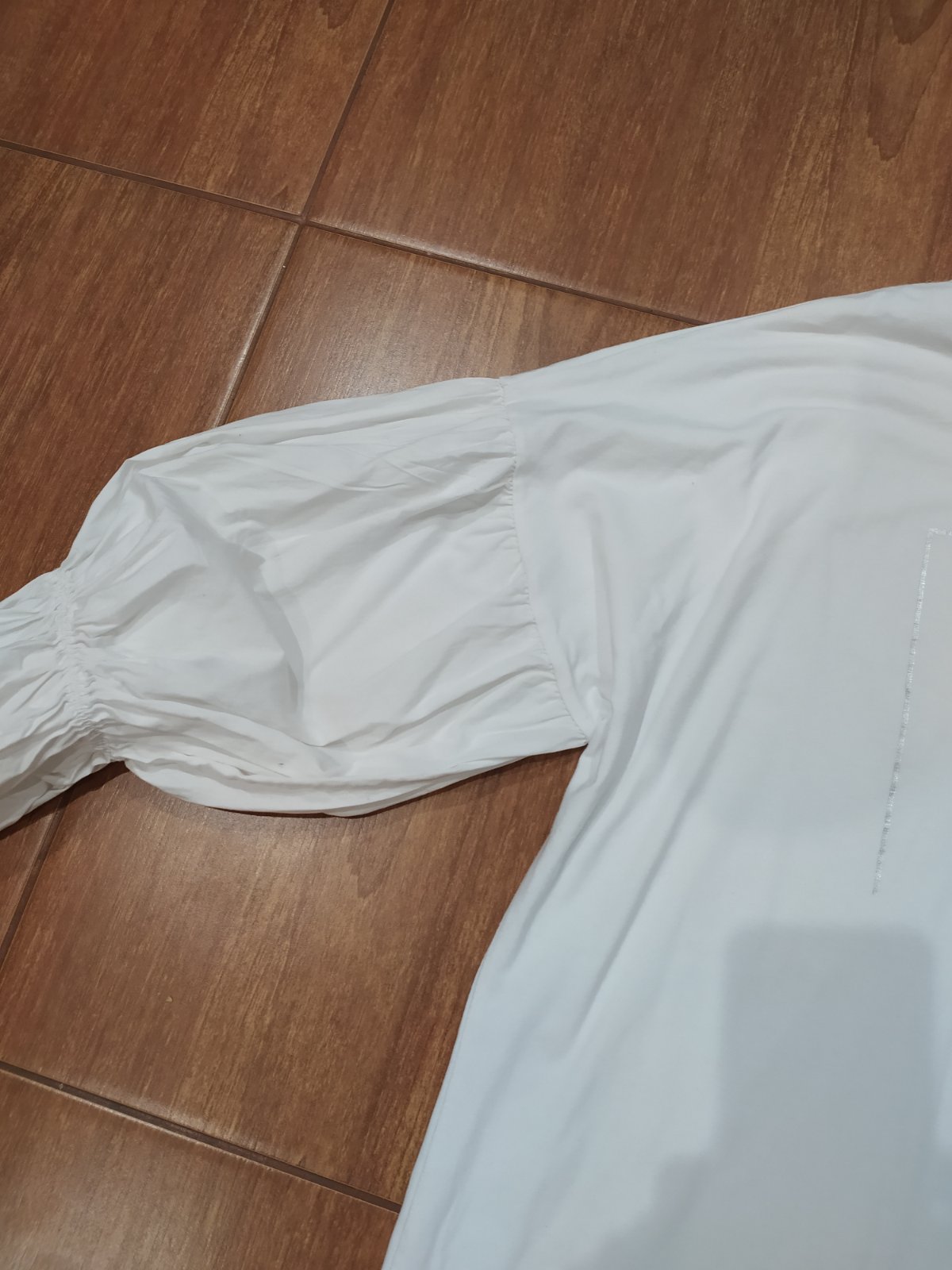 materiál trup uplet/tričkovina,rukávy bavlnená košeľové látka,dole ukončené volanikom,stiahnuté do gumičky