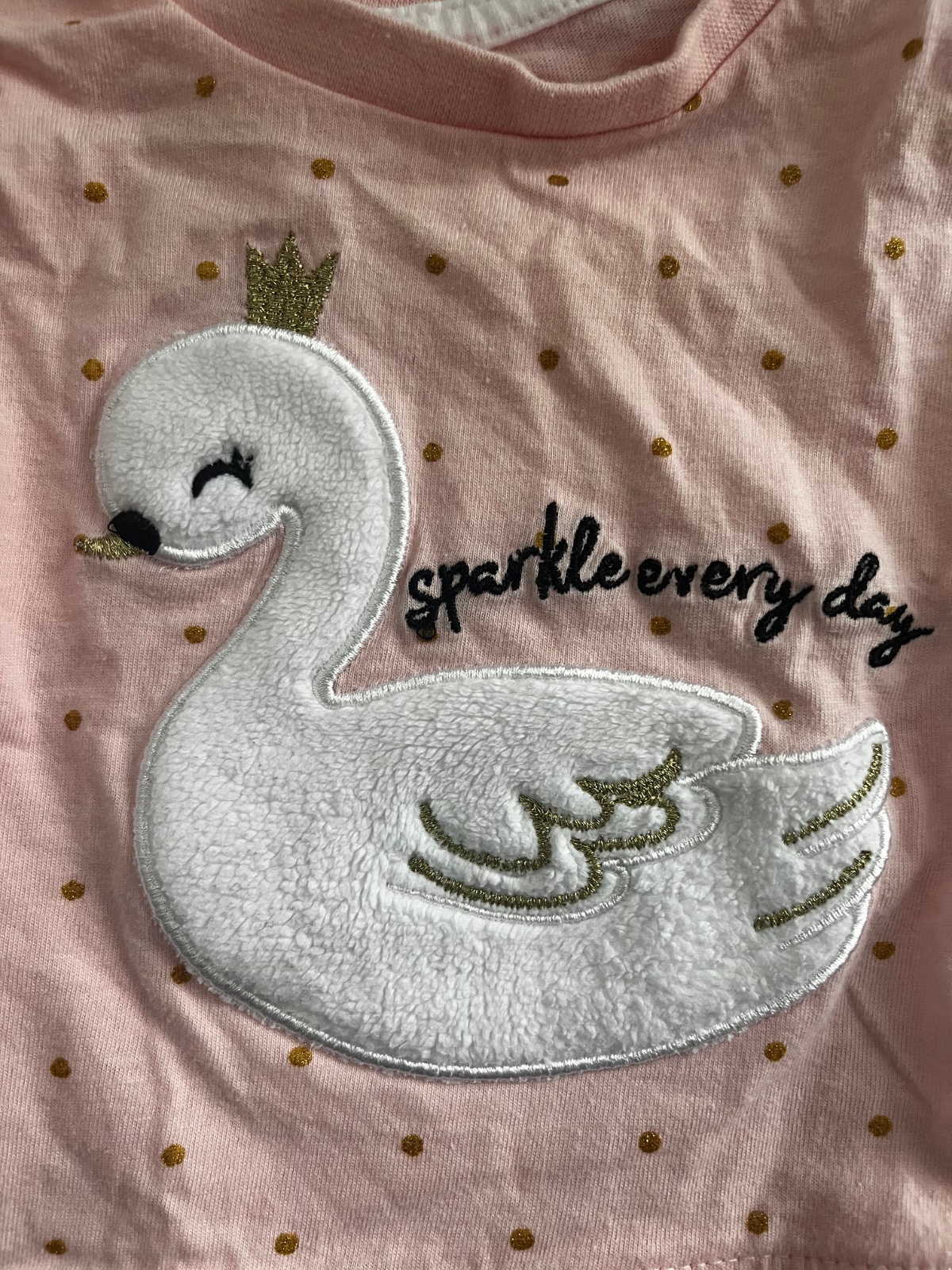 Predám v dobrom stave ružový dlhorukavovy top so zlatými bodkami a obrázkom labute značky Primark, veľkosť: 68 (3-6 mesiacov).