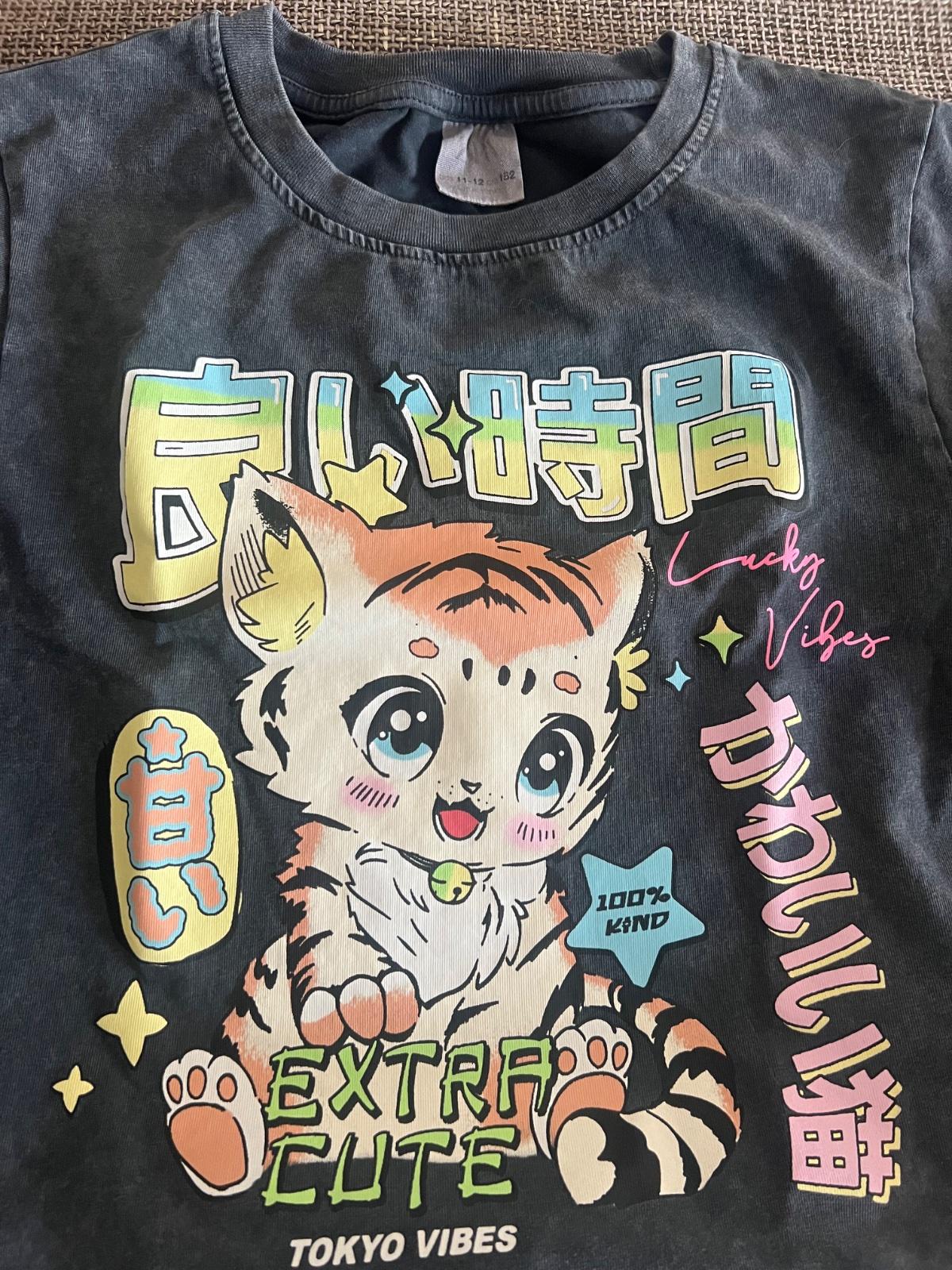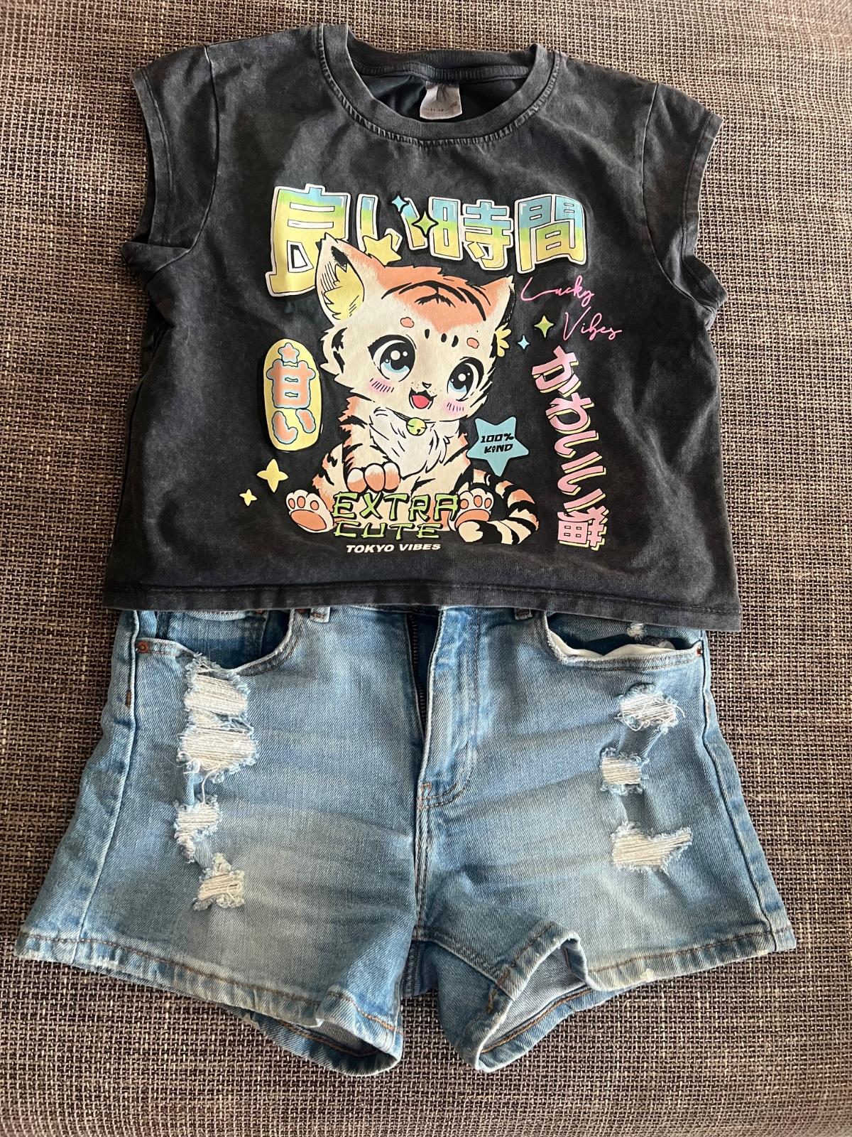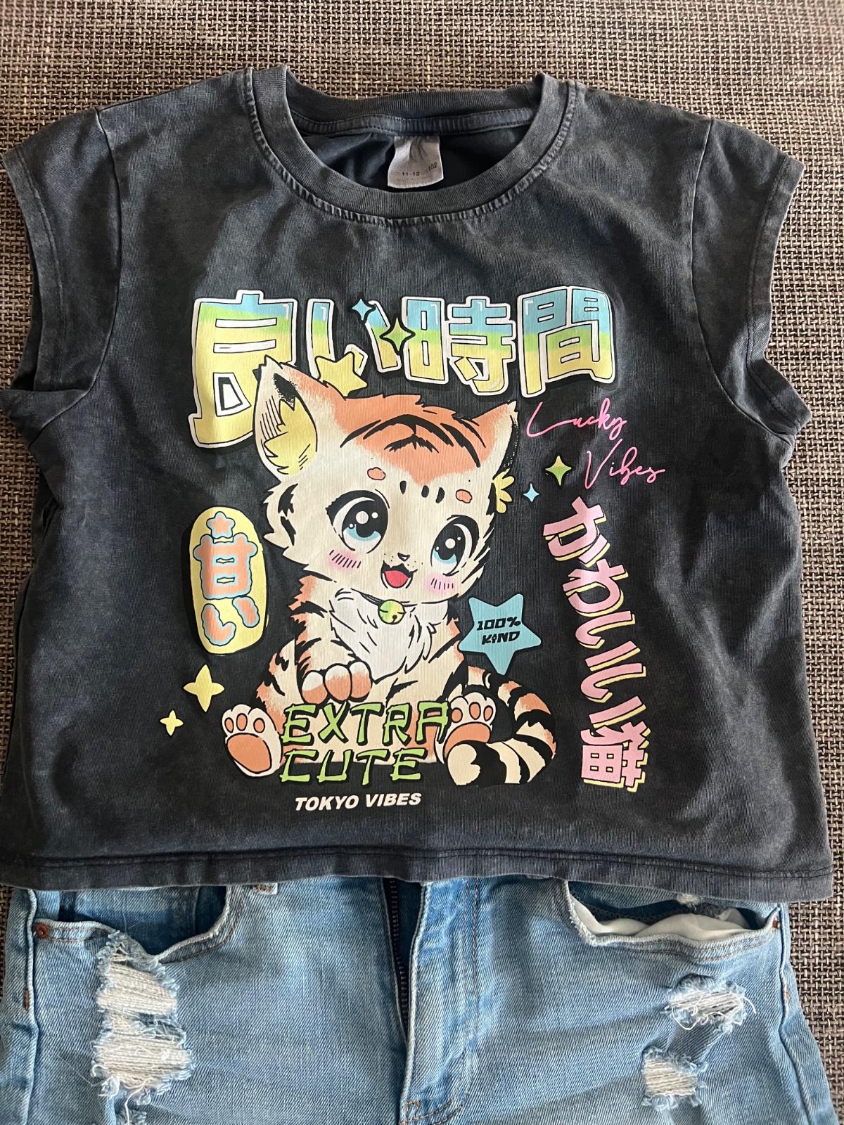 Obrázkové crop tričko zn. Zara, veľkosť má byť od 10-11 rokov (146/152), farba tmvavá šedá.