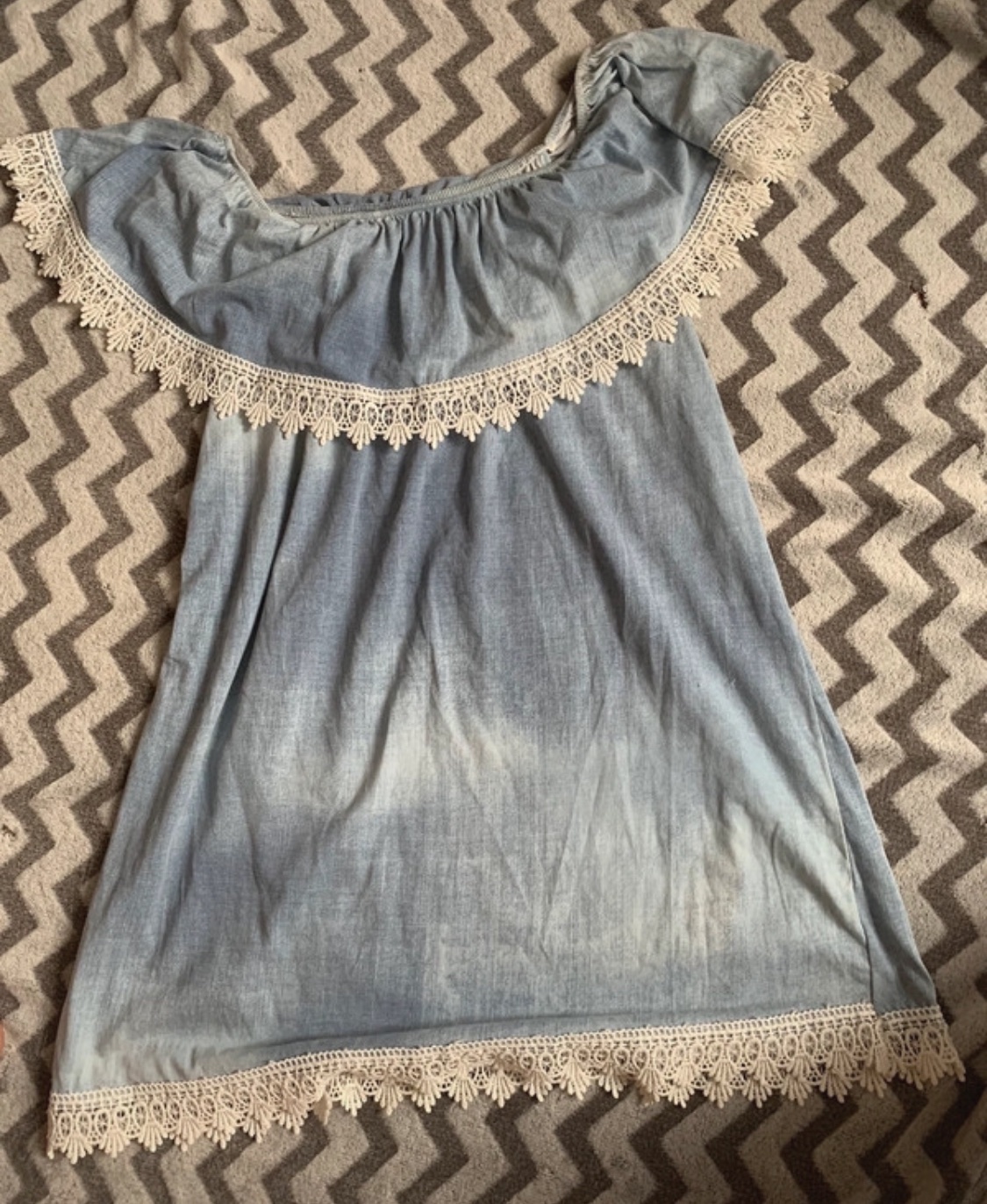 V nosenom stave.Dobrý materiál.Doma ešte poslúži.Prsia 2x54cm,dlž.71cm.