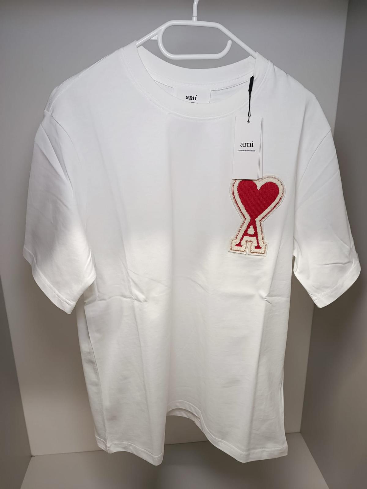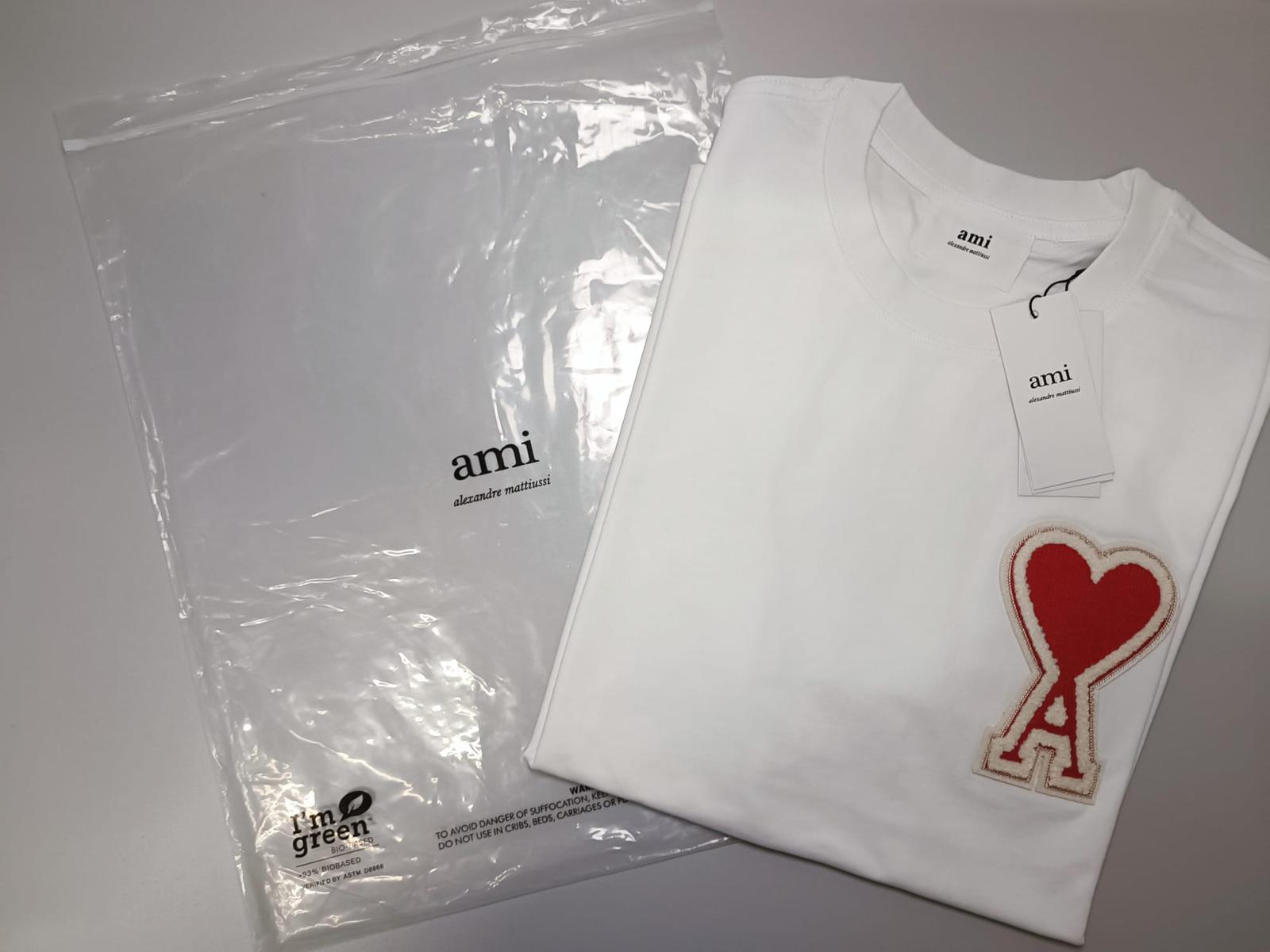 Biele tričko ami paris s veľkým logom a originálnym balením a visačkou.