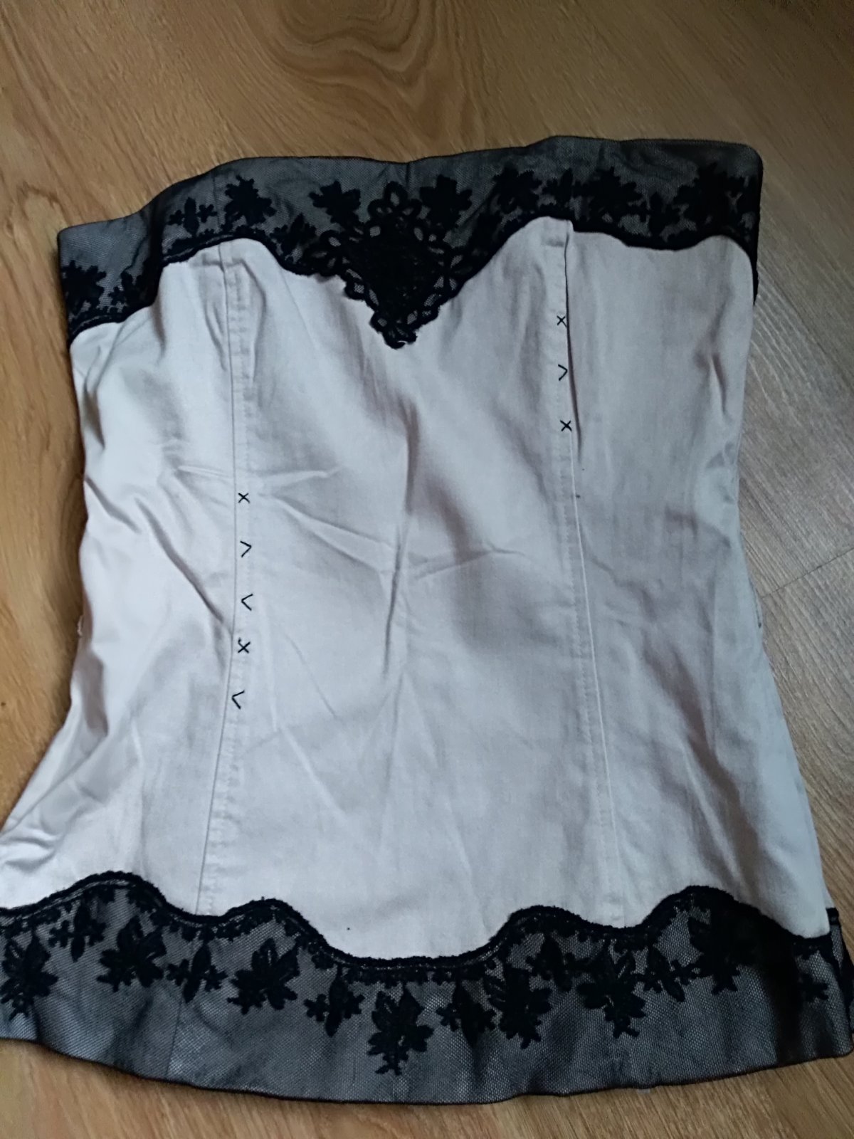 Málo nosený korzetový top s elegantnou čiernou čipkou. Zapínanie zboku na zips. Materiál mierne elastický, prispôsobivý, pekne ukáže na postave. Možnosť nosiť aj s ramienkami. V prípade záujmu rada premeriam.
