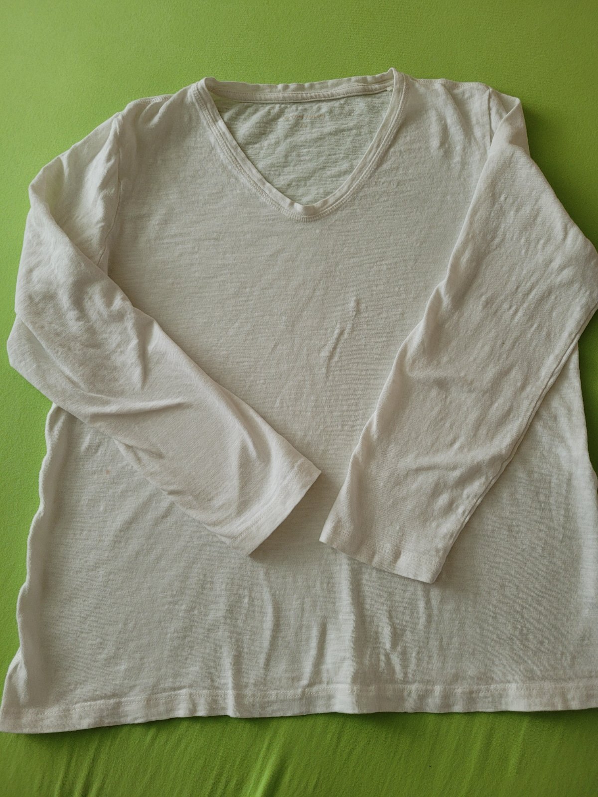 Nenosena, vo veľmi dobrom stave. Predný diel bavlnená viskóza, zadný diel úplet. Pod pazuchami 112 cm, dĺžka zadného dielu 62 cm.
