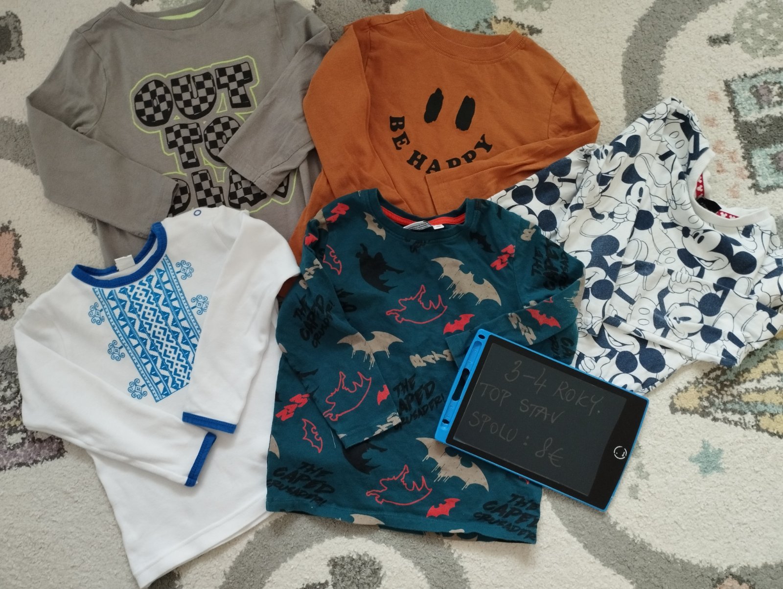 Tricka su vhodne do skolky, rozne znacky a velkosti, ale.sedia ako 104, cena je spolu za vsetky.
