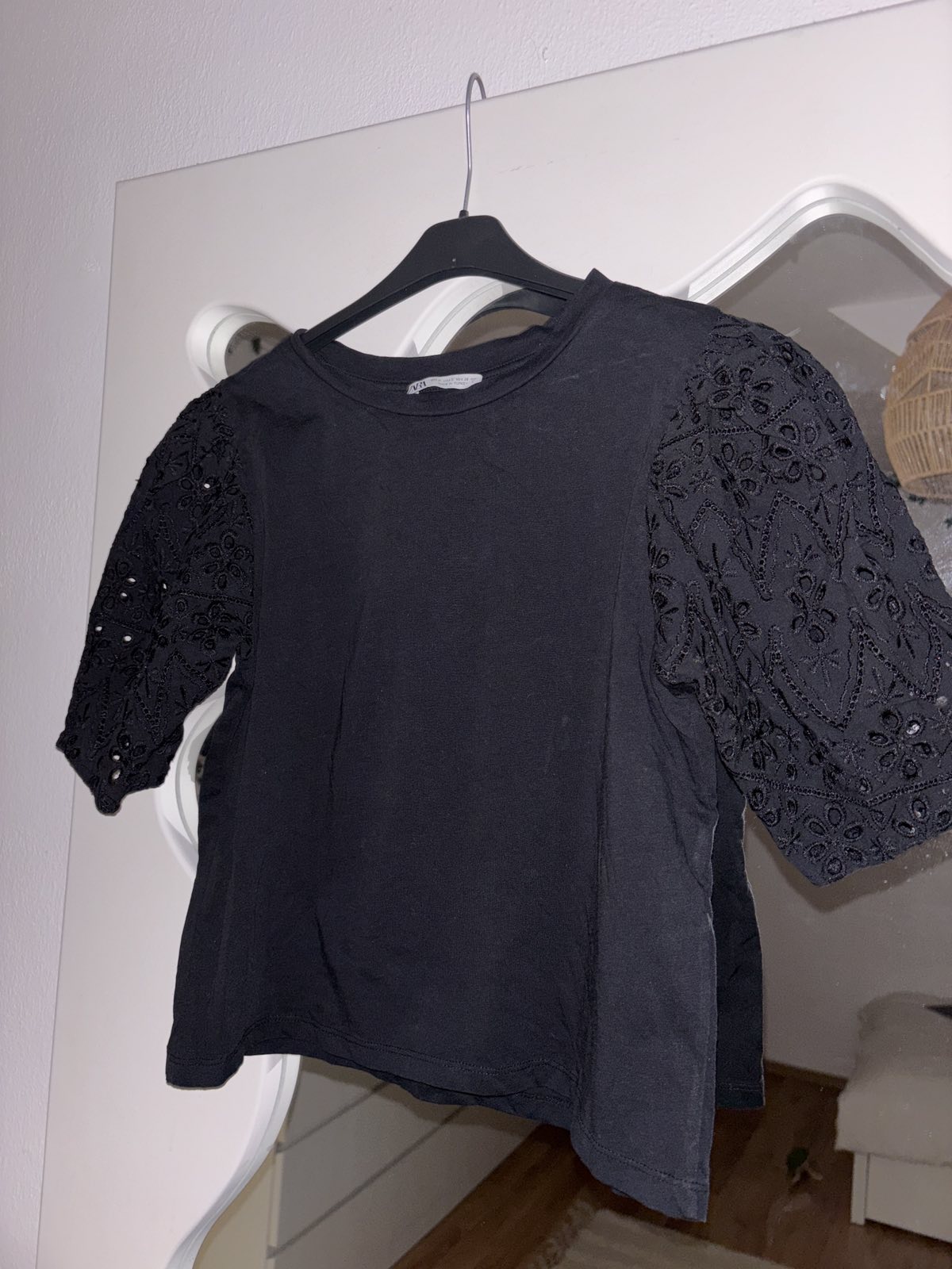 Výborný stav, čierne, pružné s madeirovymi rukávmi, veľkosť S, aj na M, s.pod pazuchami 44 cm, d. 50 cm