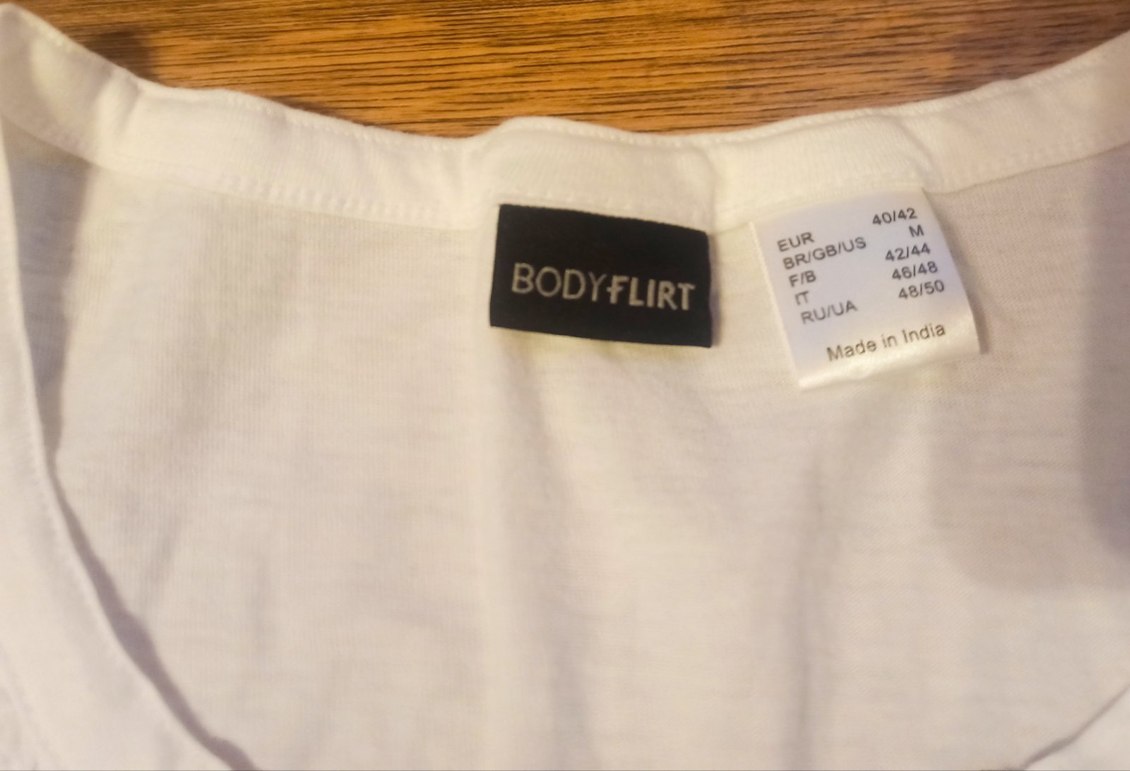 Tričko s krátkym rukávom. Poddajný, elastický materiál. Top stav. Veľkosť píšu 40, ale kľudne aj 38 dobre padne, je voľnejšieho strihu. Farba biela - maslová.