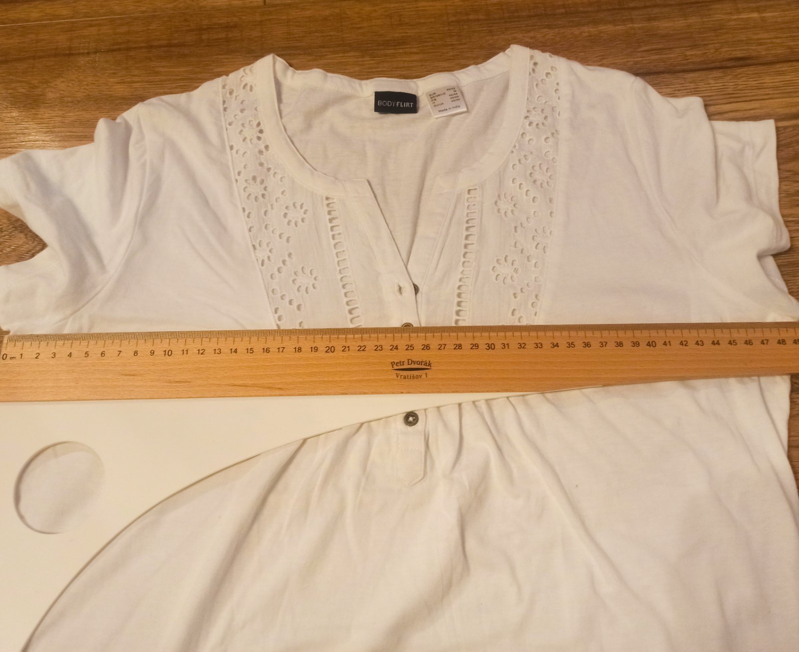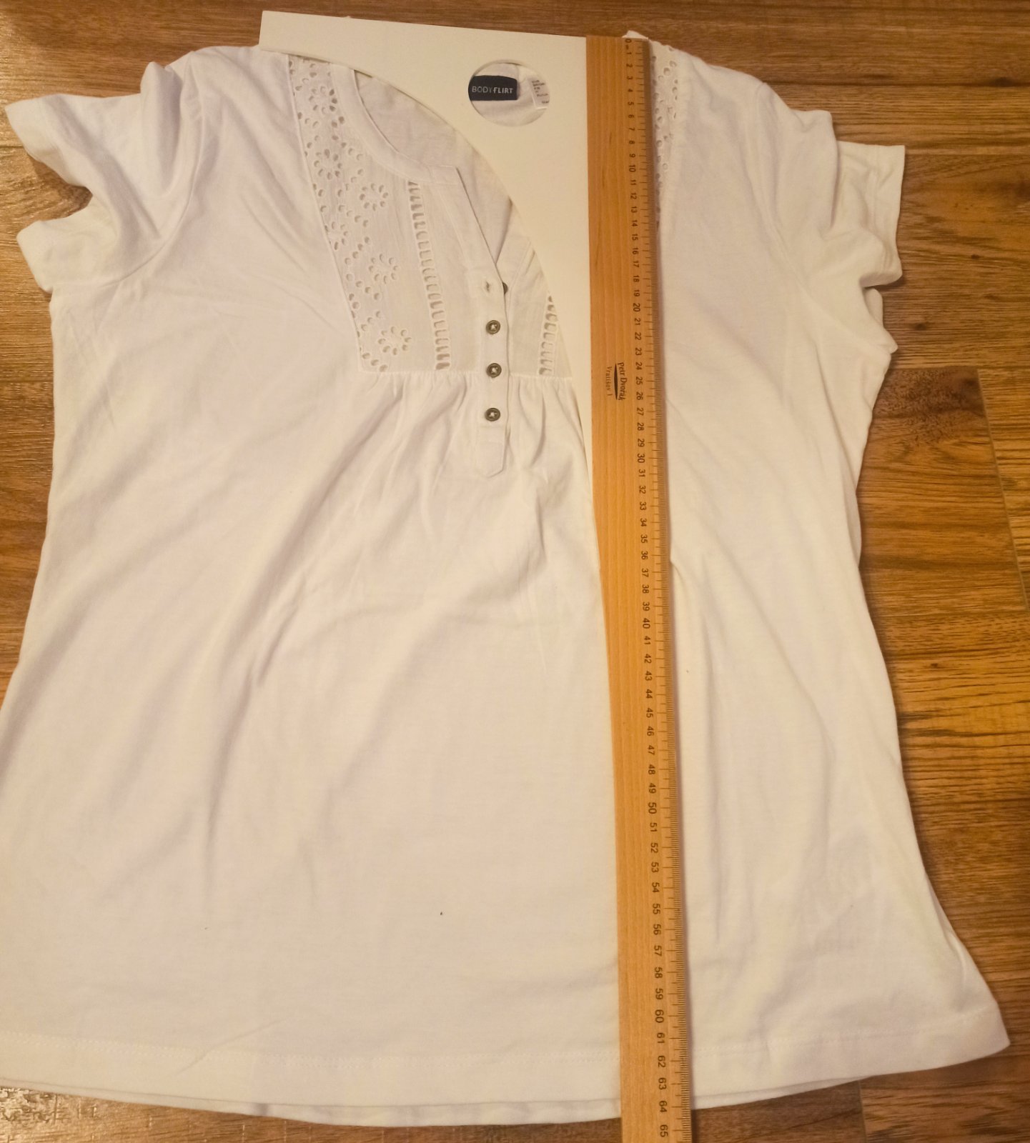 biele tričko s peknými detailami, veľkosť cca 40 (uvedená menšia veľkosť, ale je podľa mňa väčšie), premeriam na požiadanie