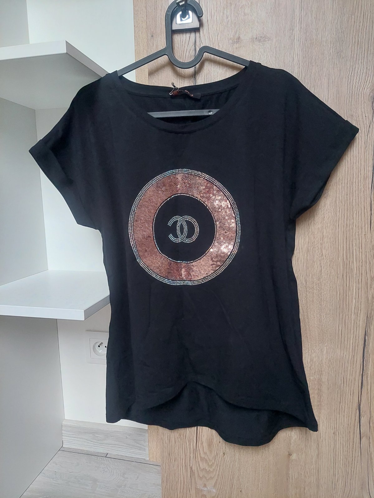 Nove tricko este s visackou uni velkost sedi na M L