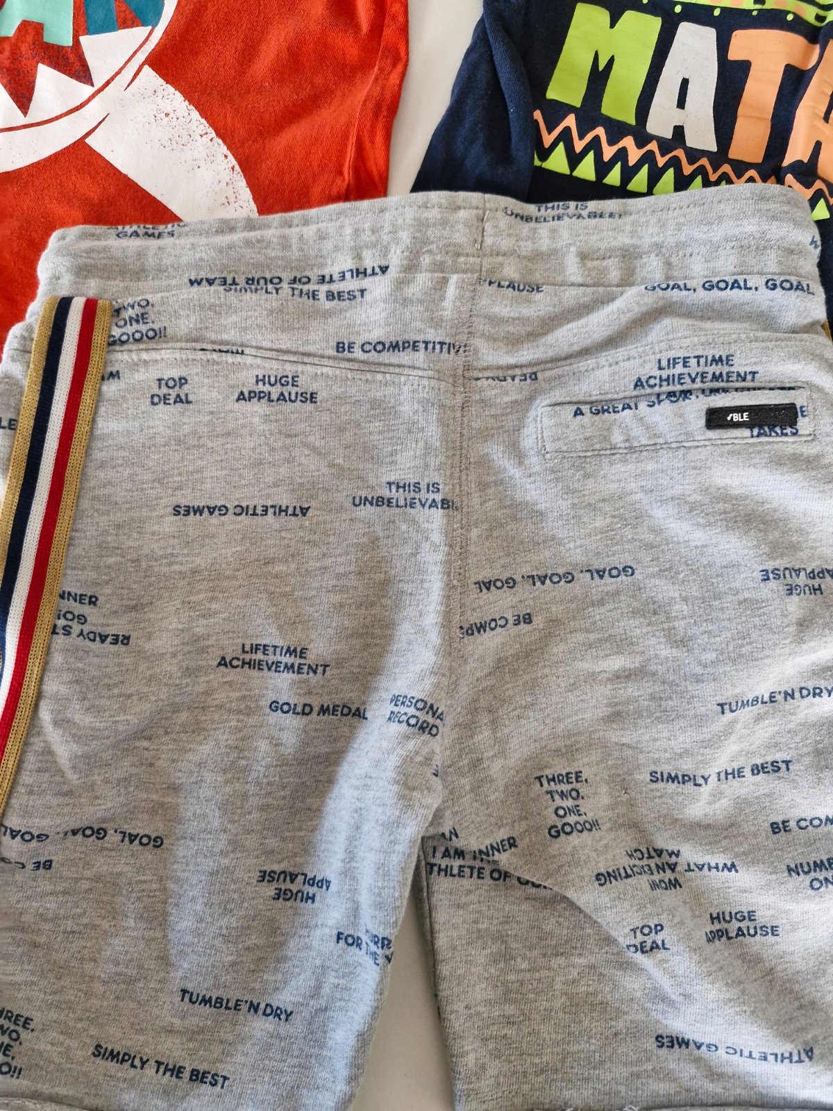 3 x tielka s motivom Cars, cierne a pasikave su mierne elasticke (vid. zlozenie) na ciernom tielku popraskany obrazok, velkost uvadzana 110/116 ale isto su o dost mensie, preto uvadzam 104, rozmery...