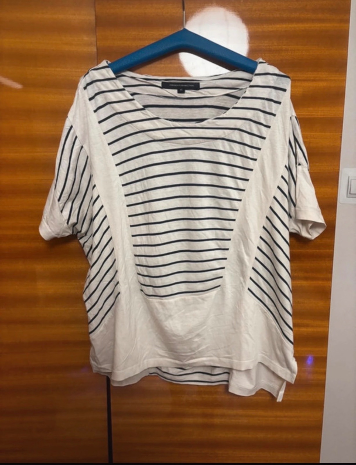 Túžiš po niečom nadčasovom?🎀Francúzska značka French Connection prináša toto pásikavé tričko.🤩😻Dobrý stav, pripravený oživiť tvoj šatník. 💞 Na štítku veľkosť XS ale sedí skôr na M,L🌺