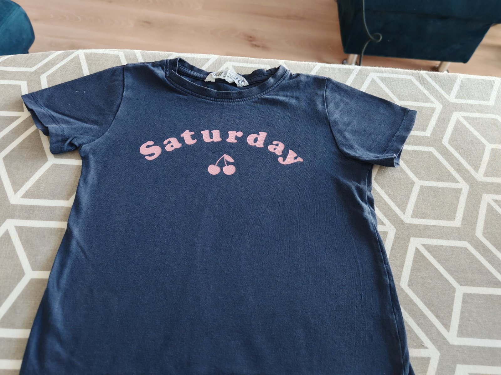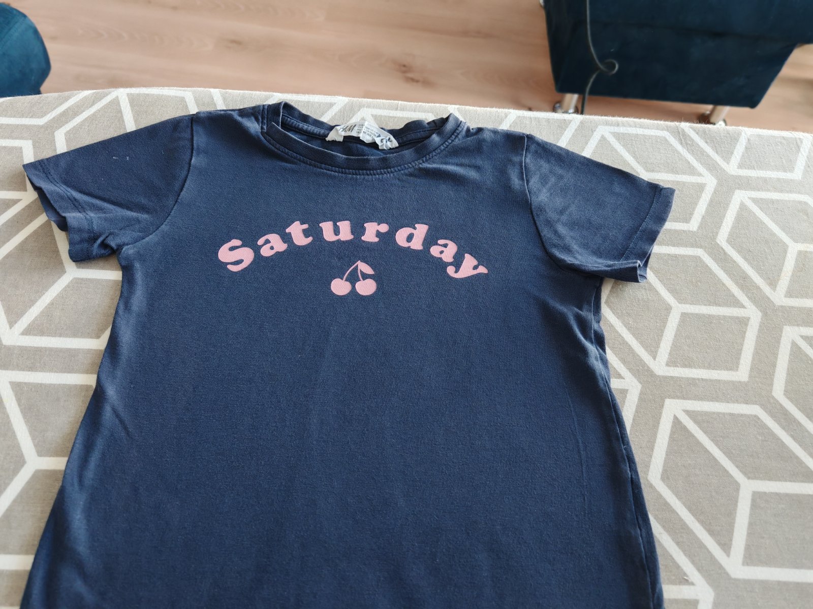 Modré tričko H&M 110, ale sadne už od 92 do 116 re