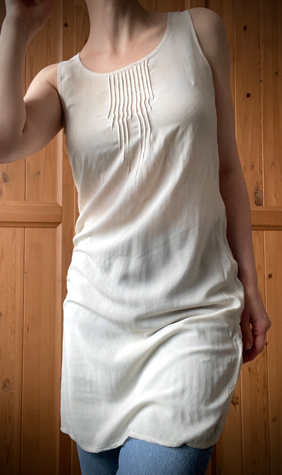 Predĺžený top zo 100% viskózy ideálny na letné mesiace, ale dá sa kombinovať napr. aj s bundou v chladnejšom období. 1x oblečený, v top stave. V skutočnosti nie je jednofarebný, je na ňom jemný efekt prelínania béžovej a krémovej farby. Kľudne sa môže využiť aj ako letné šaty či plážový odev.