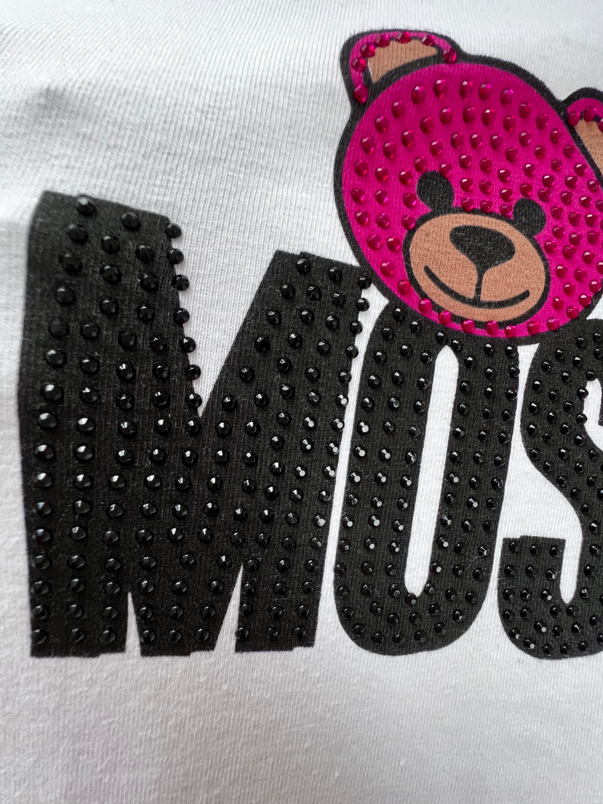 top stav, original Moschino, damske tricko s ikonickym a popularnym medvedikom aplikacia je v latke nie nazehlovacka, top stav, velkostne 36/Sko, bavlna