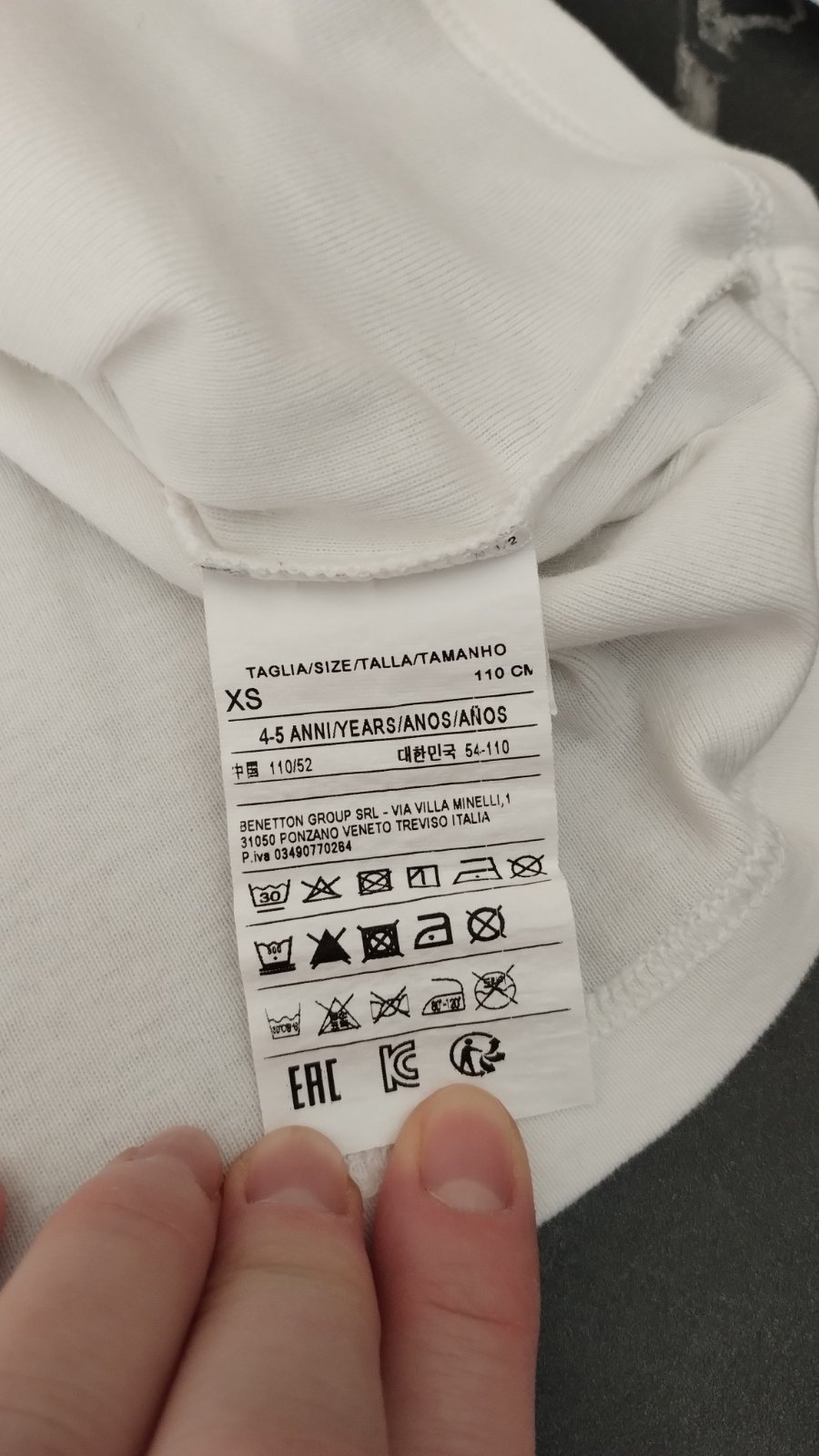 Predlzene tricko Benetton velkost 110/xs/4-5r, top stav