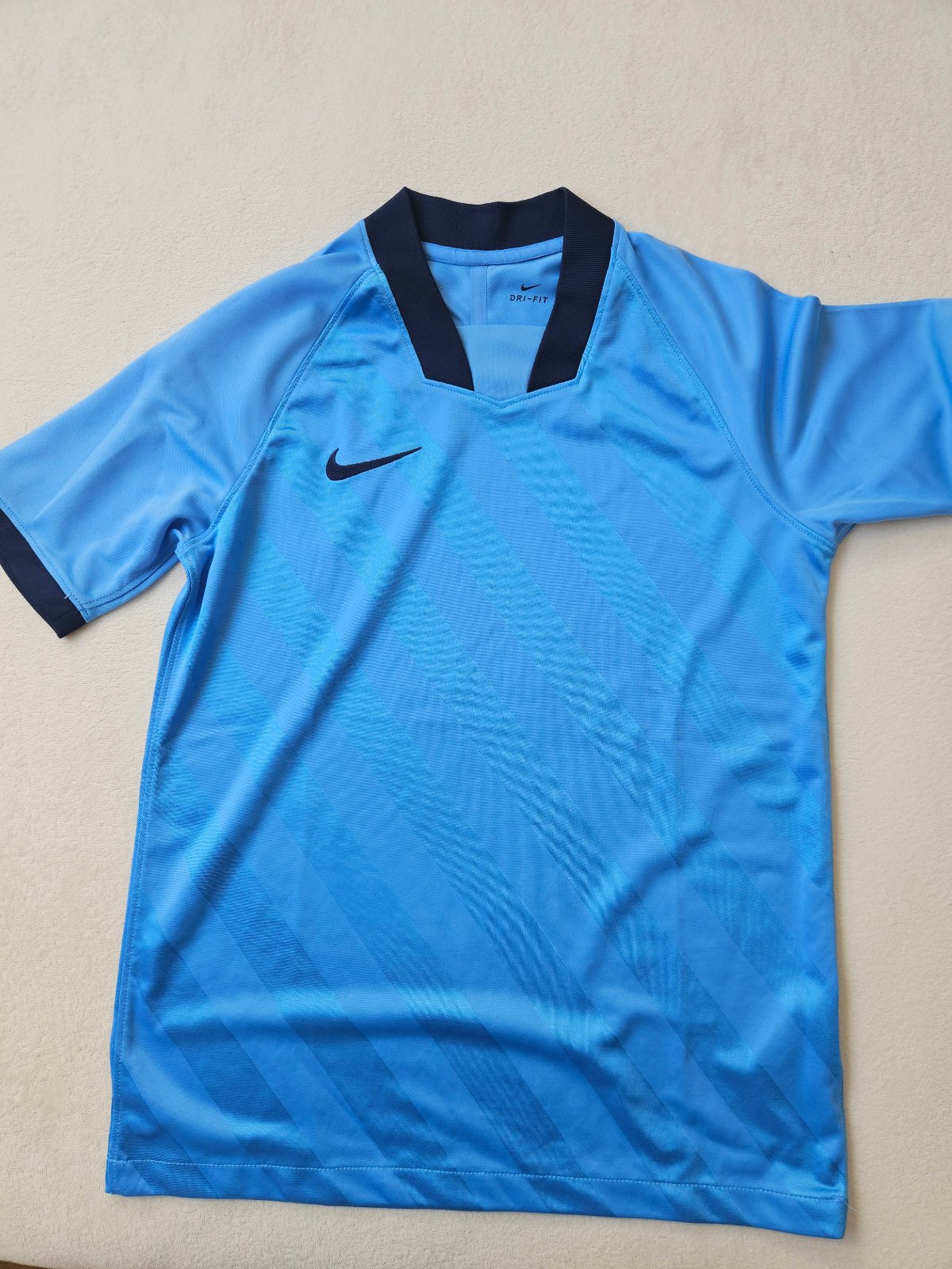 chlapčenské modré tričko, zapínanie na gombíky ku krku, golier, príjemný kvalitný materiál, zloženie: 100 % bavlna, stav: výborný, málo nosený, značka: Nike, uvádzaná veľkosť na štítku 10-12 rokov...