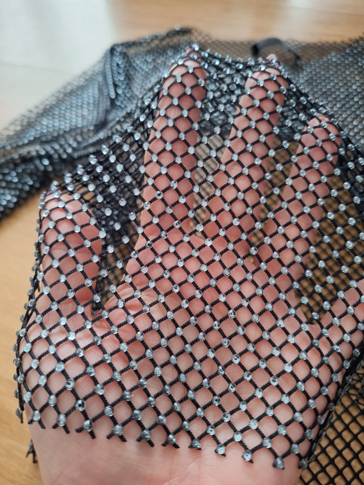 Posúvam nové krásne sieťované tričko s kamienkami.