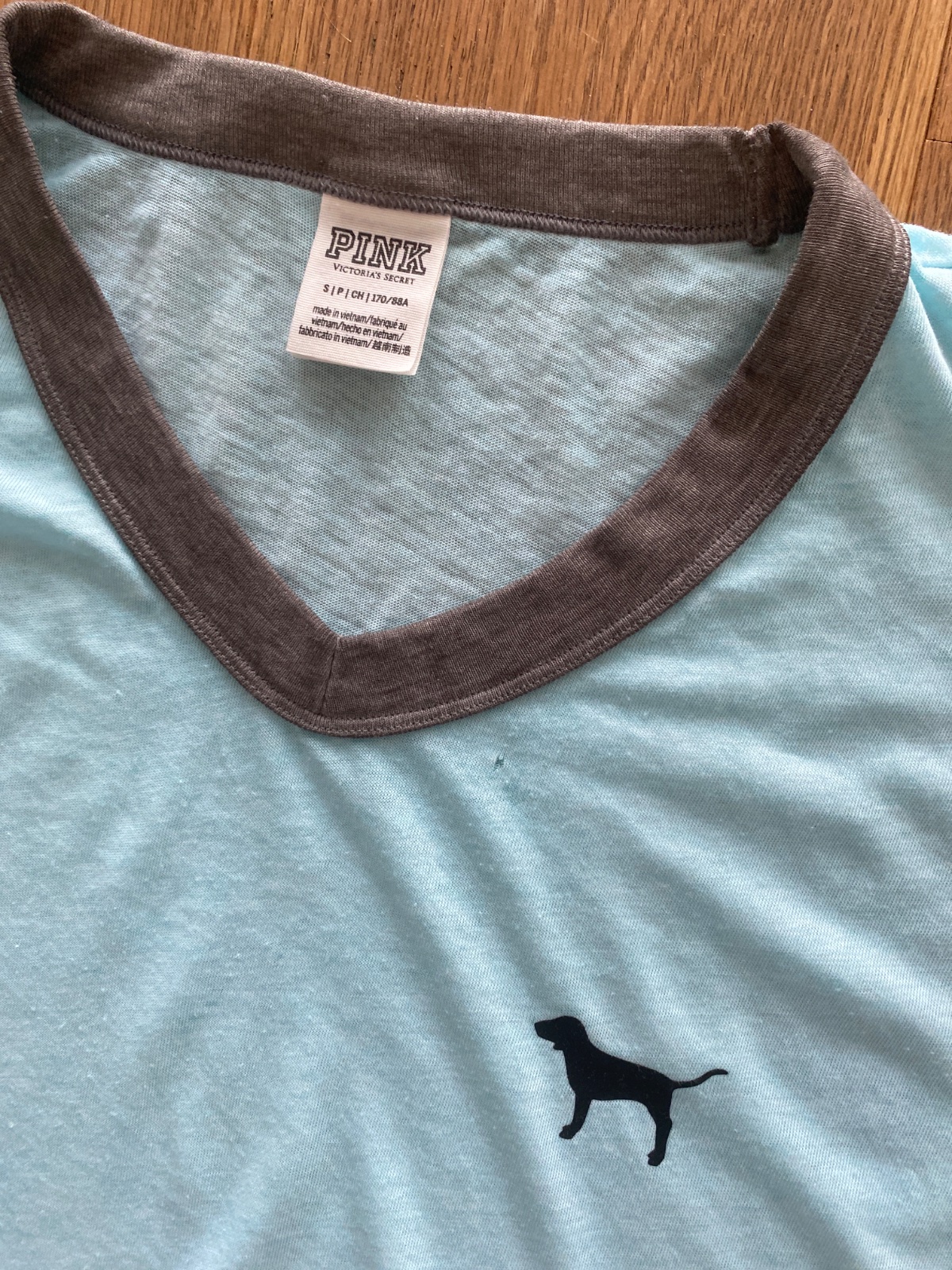 Tricko zn. Victoria’s Secret Pink , vo velkosti S, je vo velmi peknom nosenom stave. Jedna mini dierka pod golierom (vid detail foto)