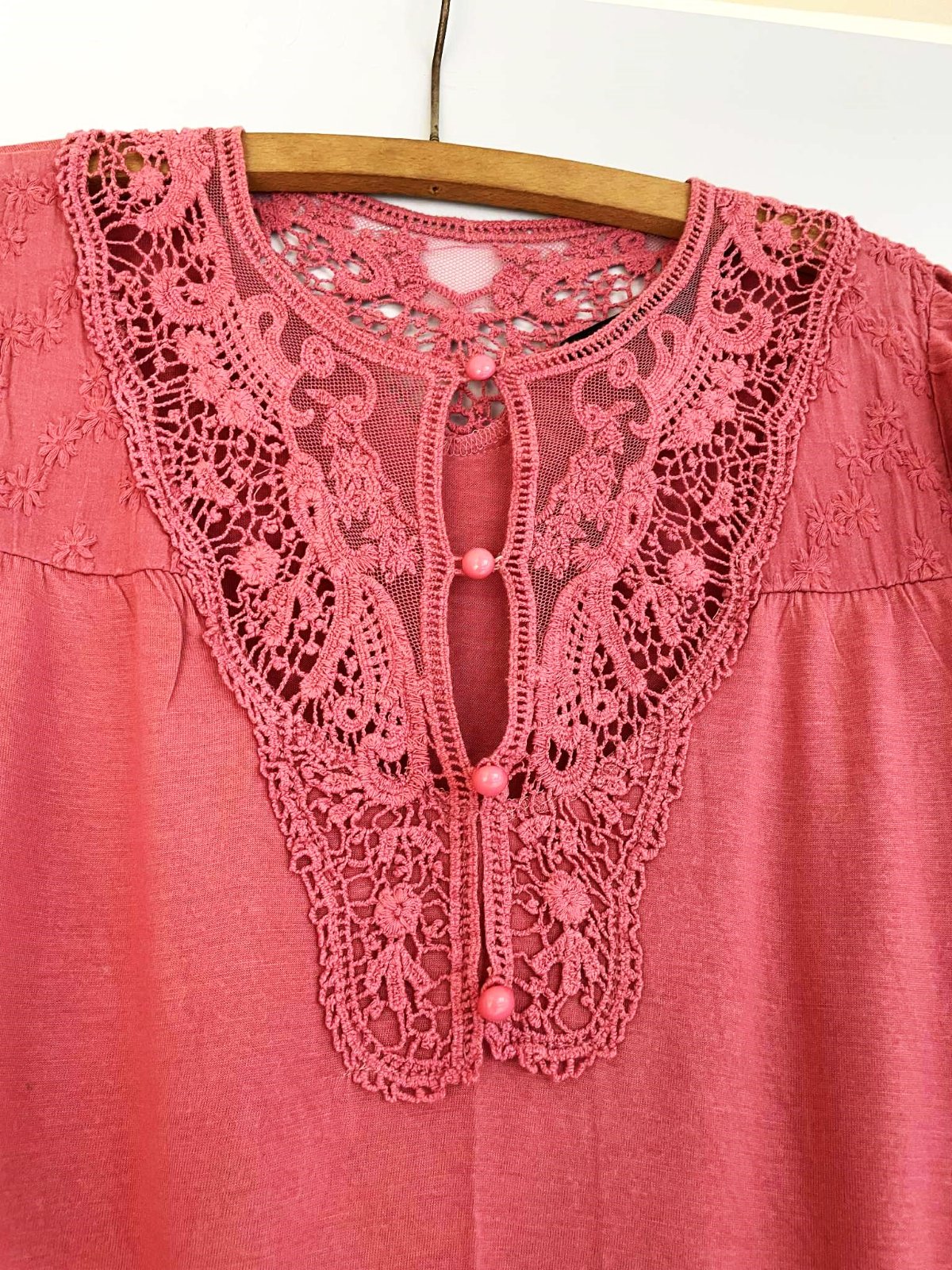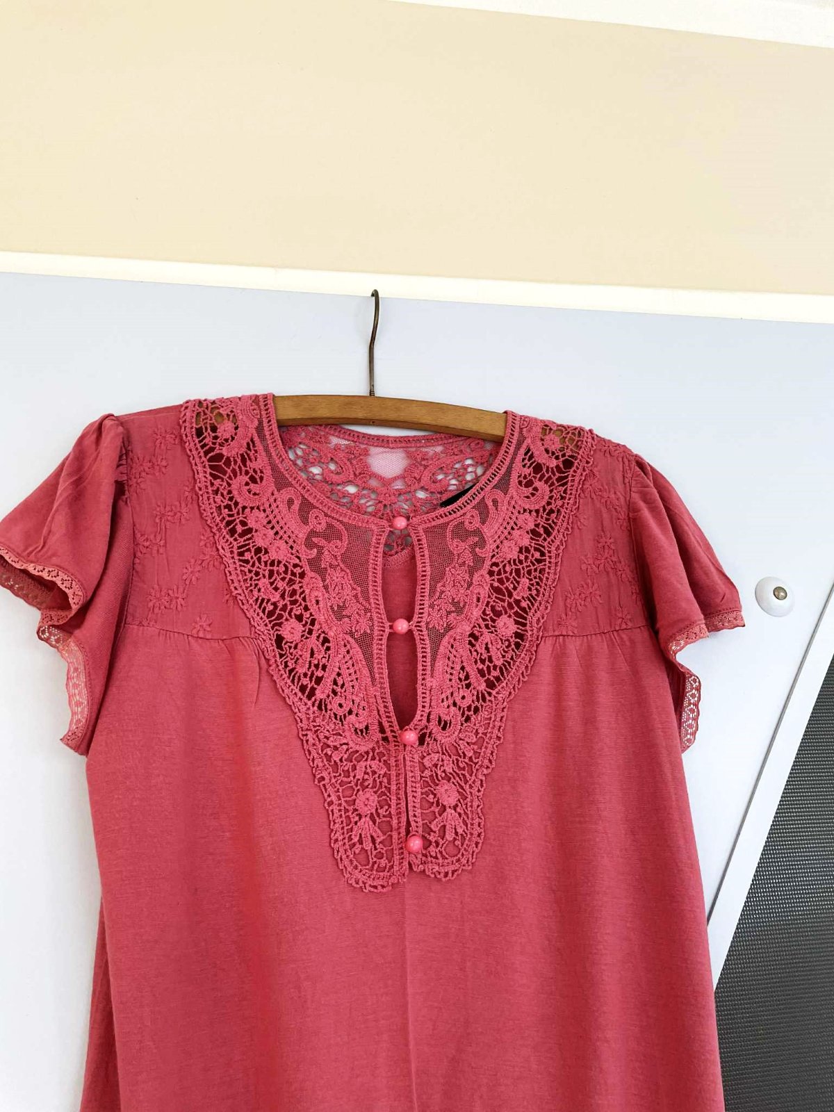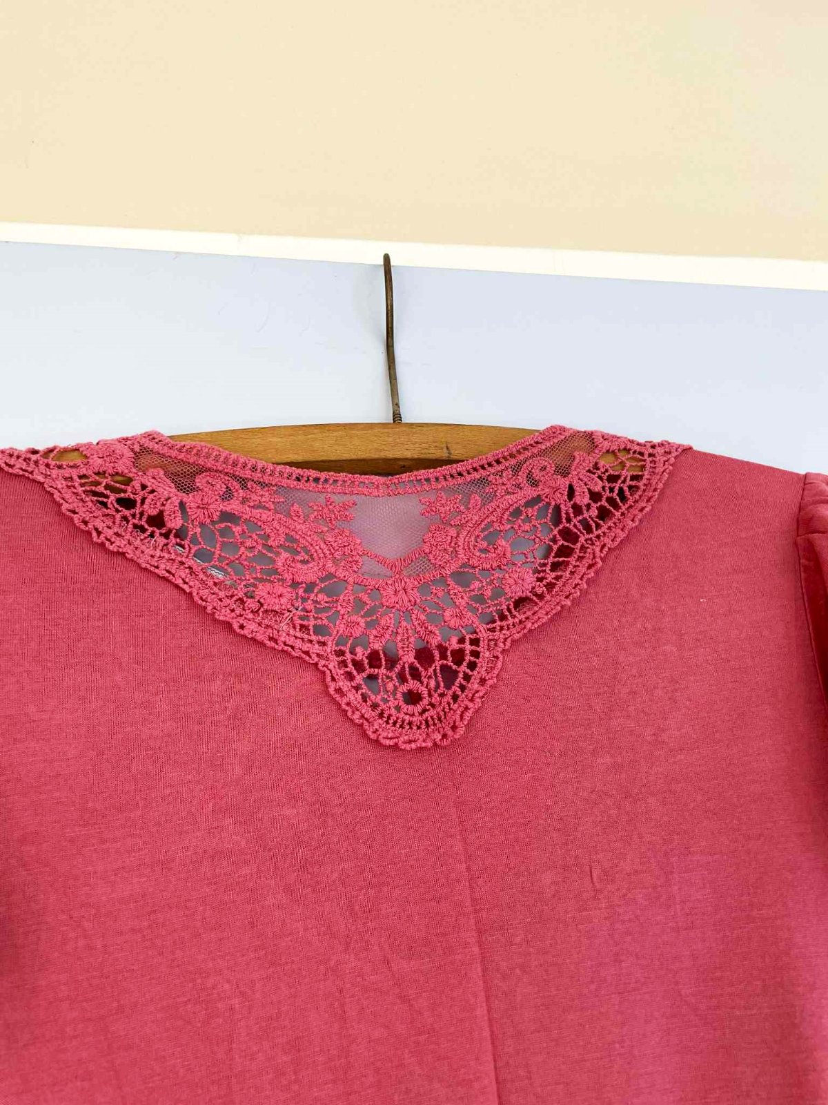 nádherné romantické tričko,neznosené, farba matná - vyblednutá nevýrazná malinovo ružová,top stav a kvalita,veľkoť a značka vyfotené