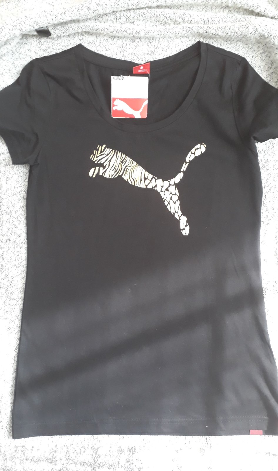 Ponúkam na predaj úplne nové a nenosené tričko zn. Puma vo veľkosti S. Potlač je v zlatej farbe. Cena je bez poštovného.