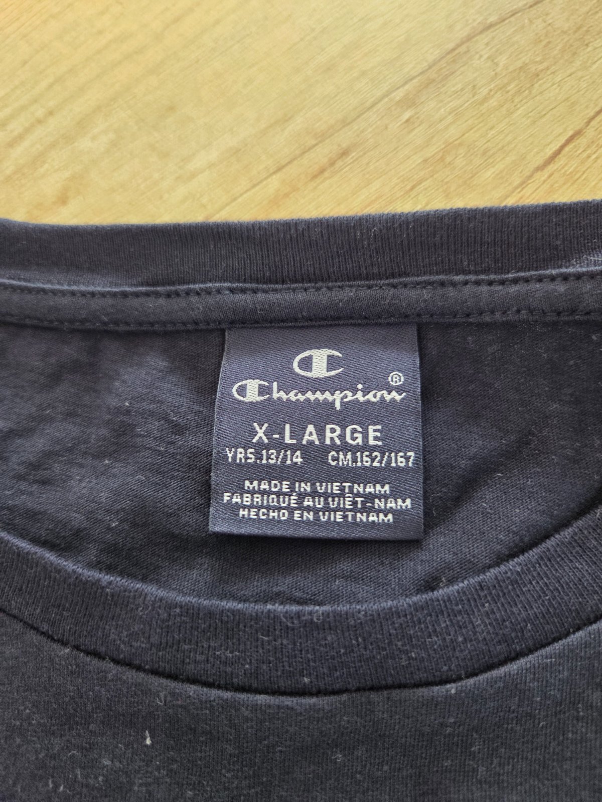 chlapčenské čierne tričko s motívom, príjemný kvalitný materiál, zloženie: 100 % bavlna, stav: výborný, málo nosený, značka: Champion, uvádzaná veľkosť na štítku 13-14 rokov, 159-164 cm, premerajte...