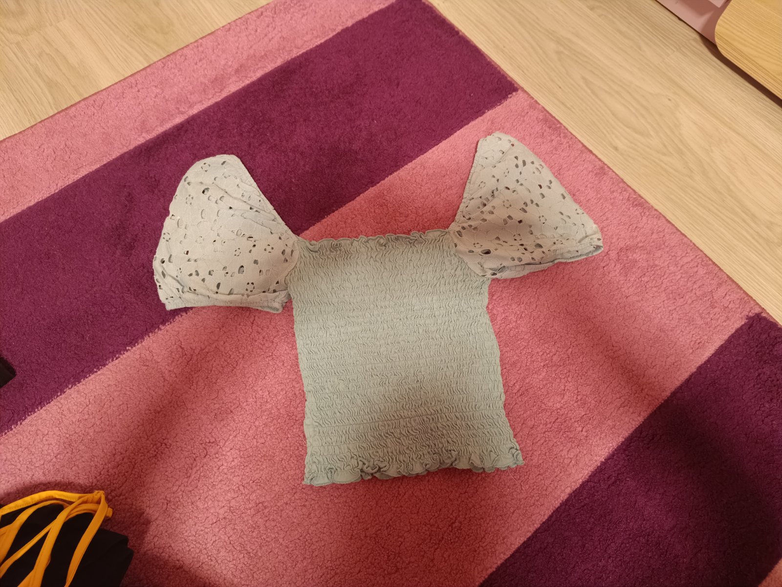 Pribalim k nakupu. Mile tricko, avsak uz vidno nosenie - ma zmolky z prania (vid foto) a kusok sa para sitie na patente (zozadu)