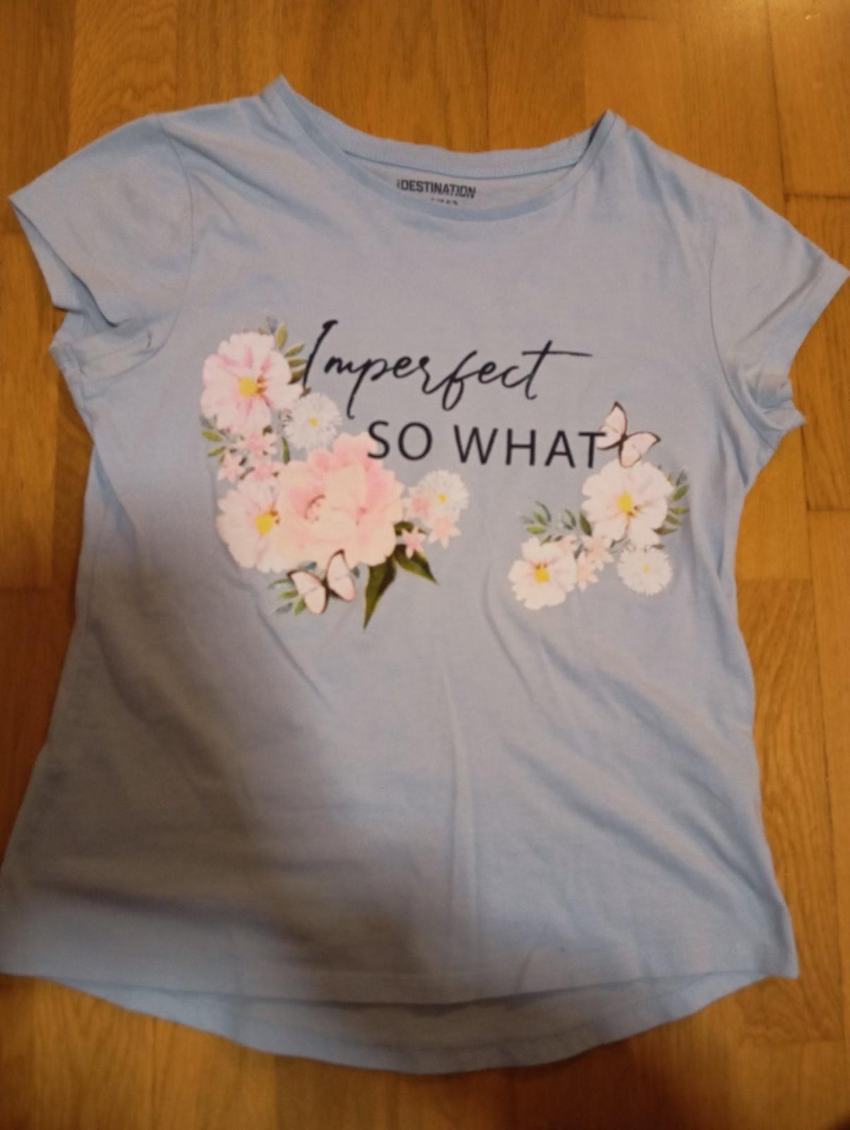 Pekné tričko s kvietkami a motýľmi, veľ. 146/152. Bežné známky nosenia (zohľadnené v cene), žiadne vážne poškodenia.