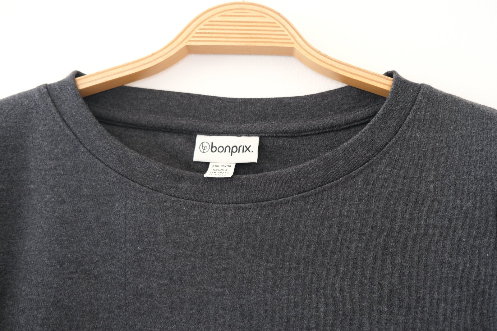 🛒 Antracit melirové tričko z ťažkej bio bavlny 3/4 rukávmi