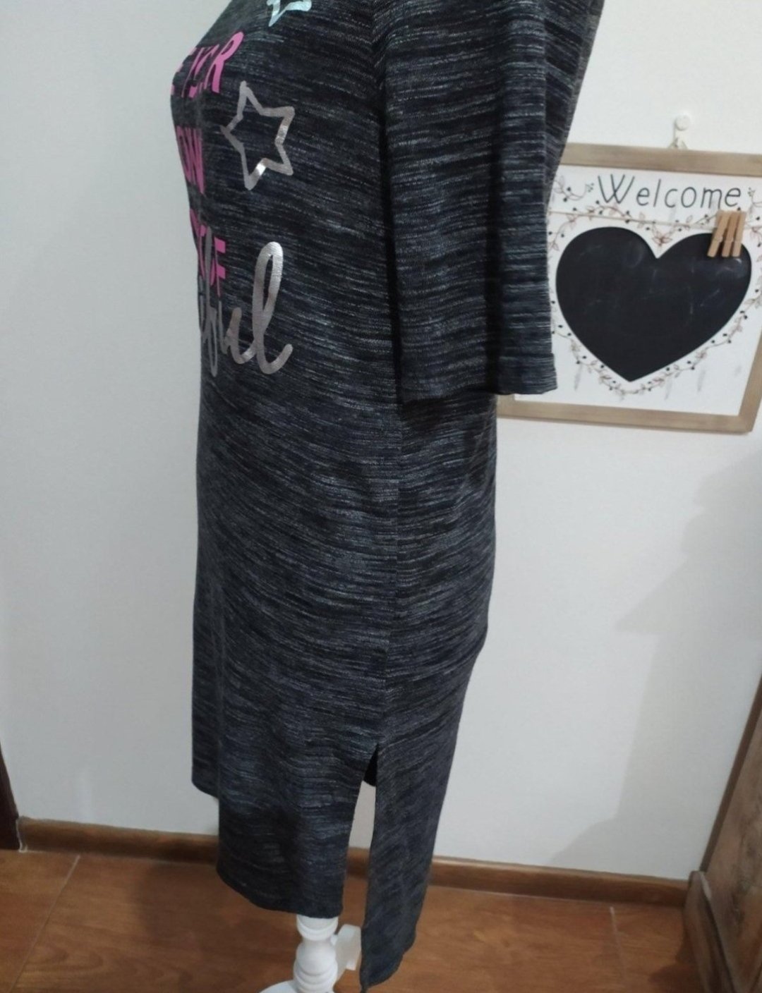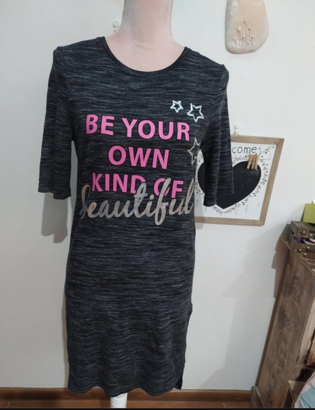 Uvádza M-ko, ale je asi menšie také S-ko. Pár-krát oblečené, bez poškodení. Dĺžka 59 cm, šírka 44,5x2 cm a rukáv je tak nižšie padnutý 44 cm. Mat. 100% viskóza.