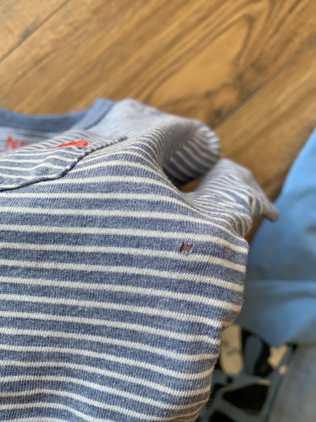 Tričká Nosené, poškodenie viď foto - fľaky na bielom tričku, pásikavé mini dierka
