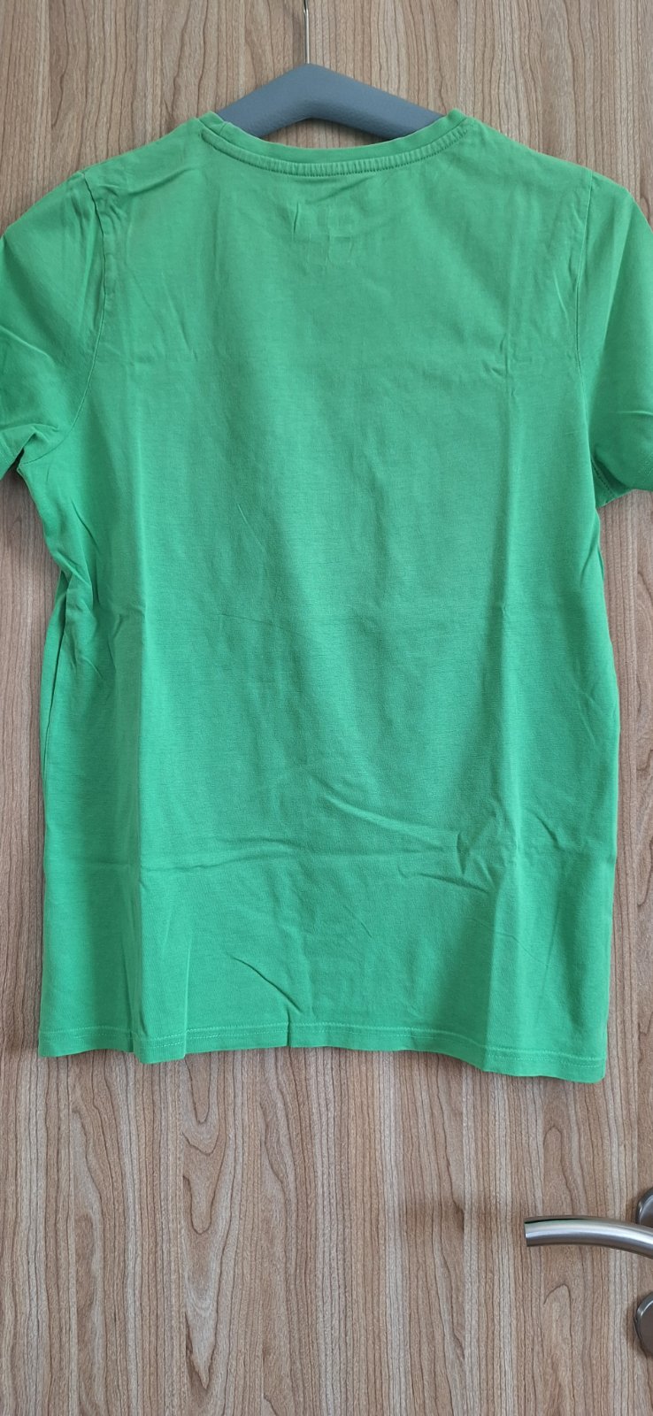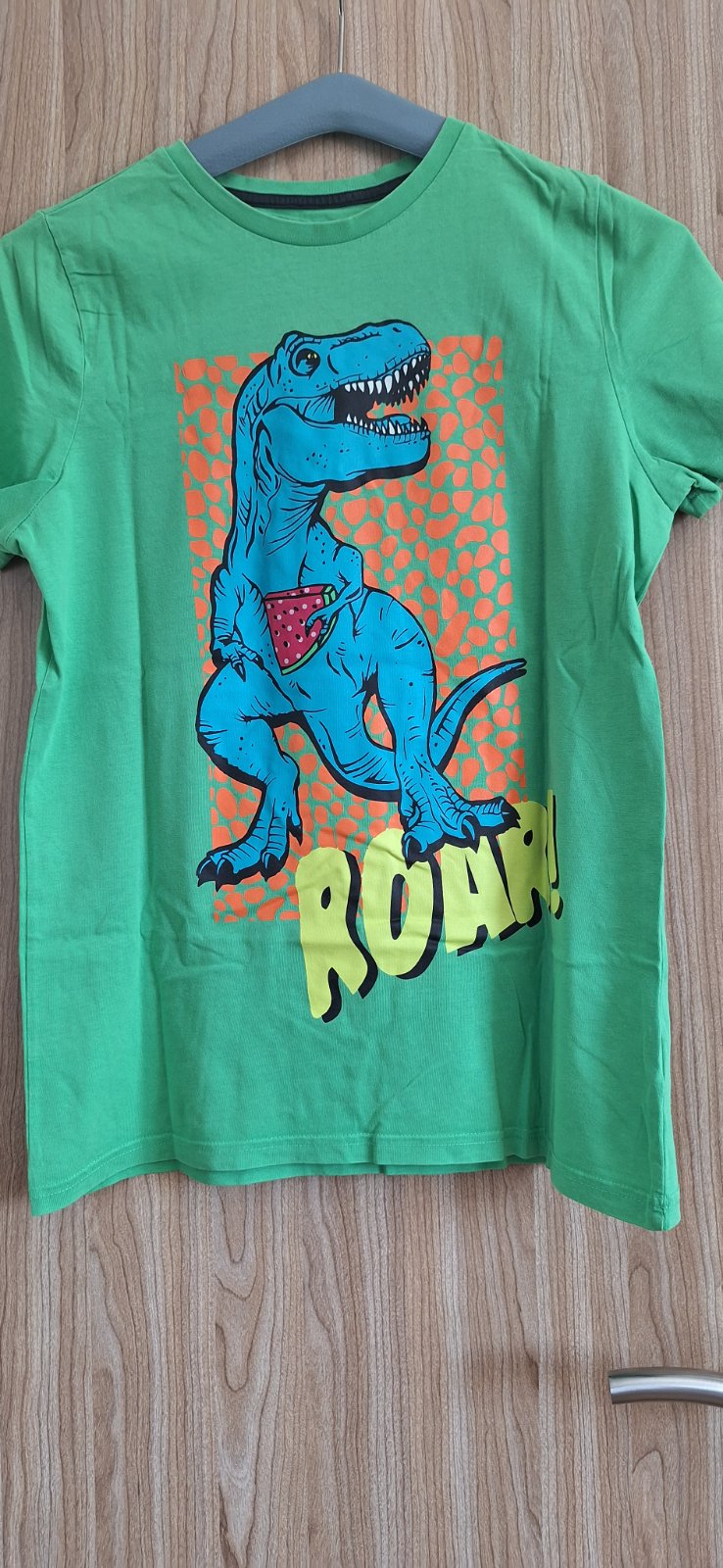 Predám tričko, krátky rukáv, potlač dinosaurus, bez poškodenia. Veľkosť 164 cm. Materiál 100 % bavlna. Celková dĺžka je 67 cm, dĺžka rukávu 21 cm, šírka je 48 cm. Bez poškodenia. Osobný odber v BA a blízkom okolí, v prípade zaslania poštou podľa vlastného výberu bude poštovné pripočítané.