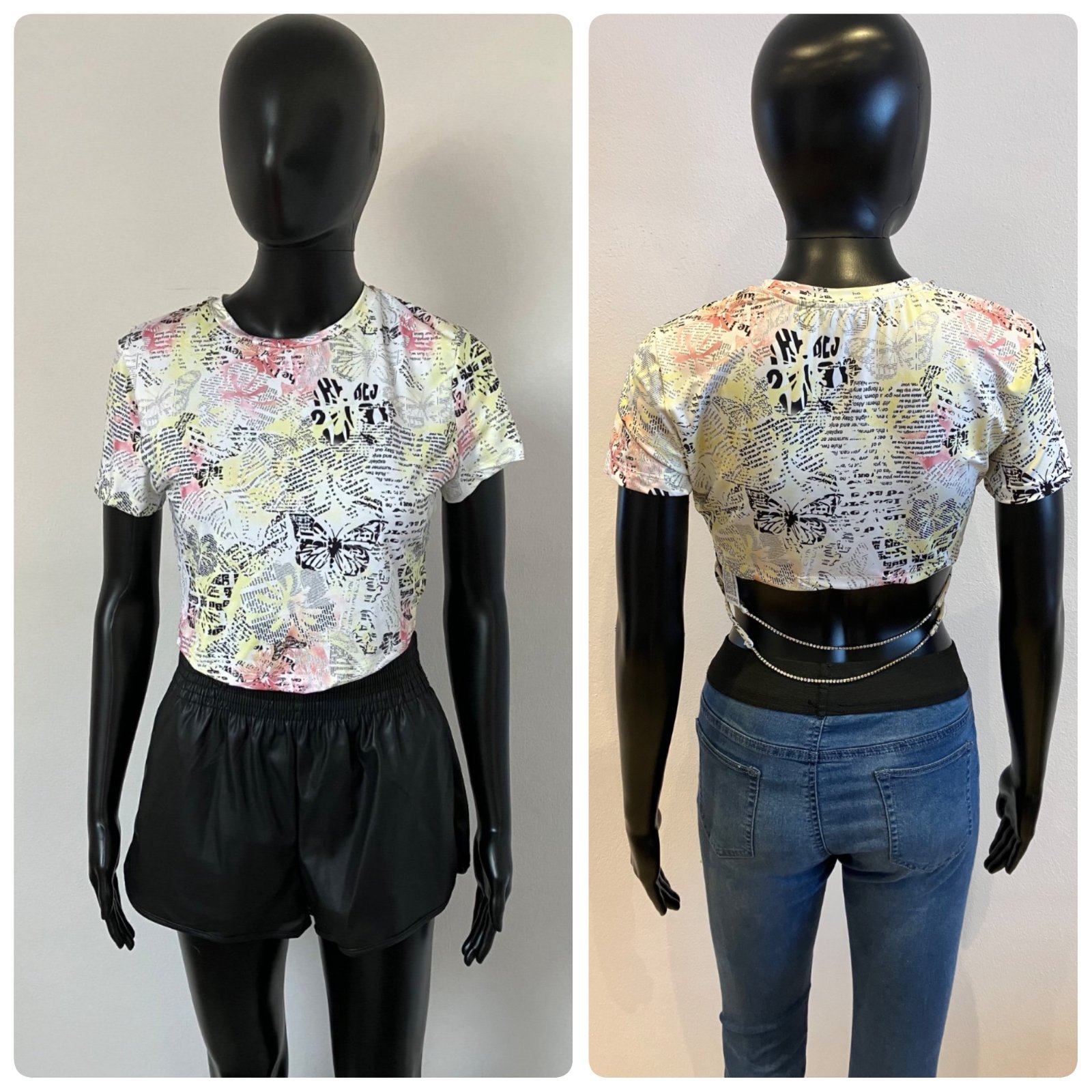 Farebné crop tričko Bershka (L)