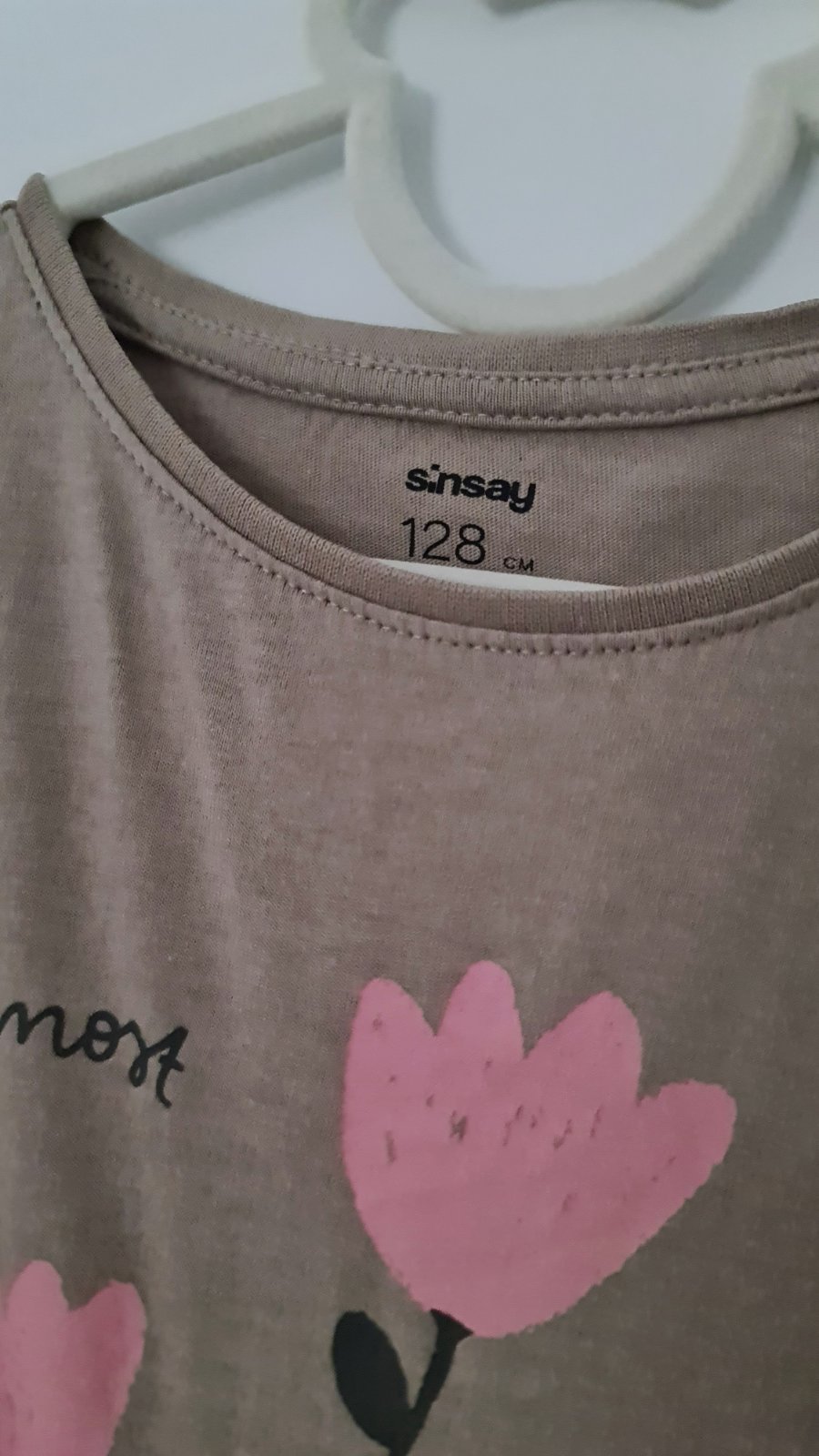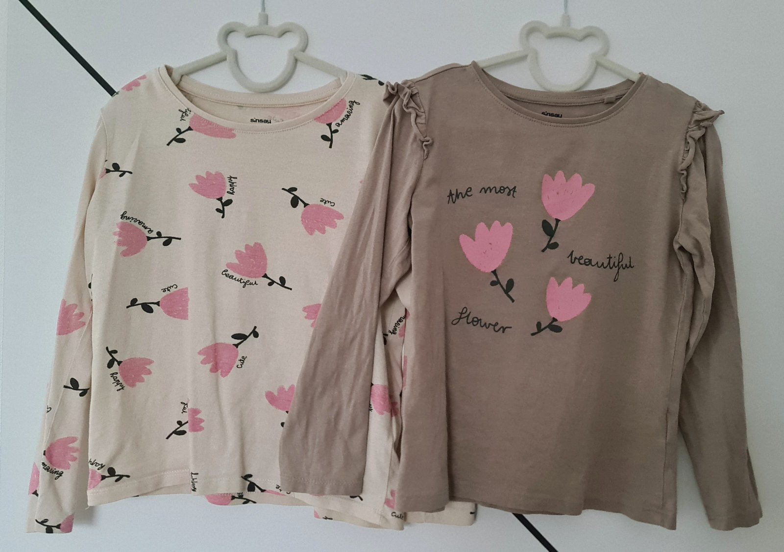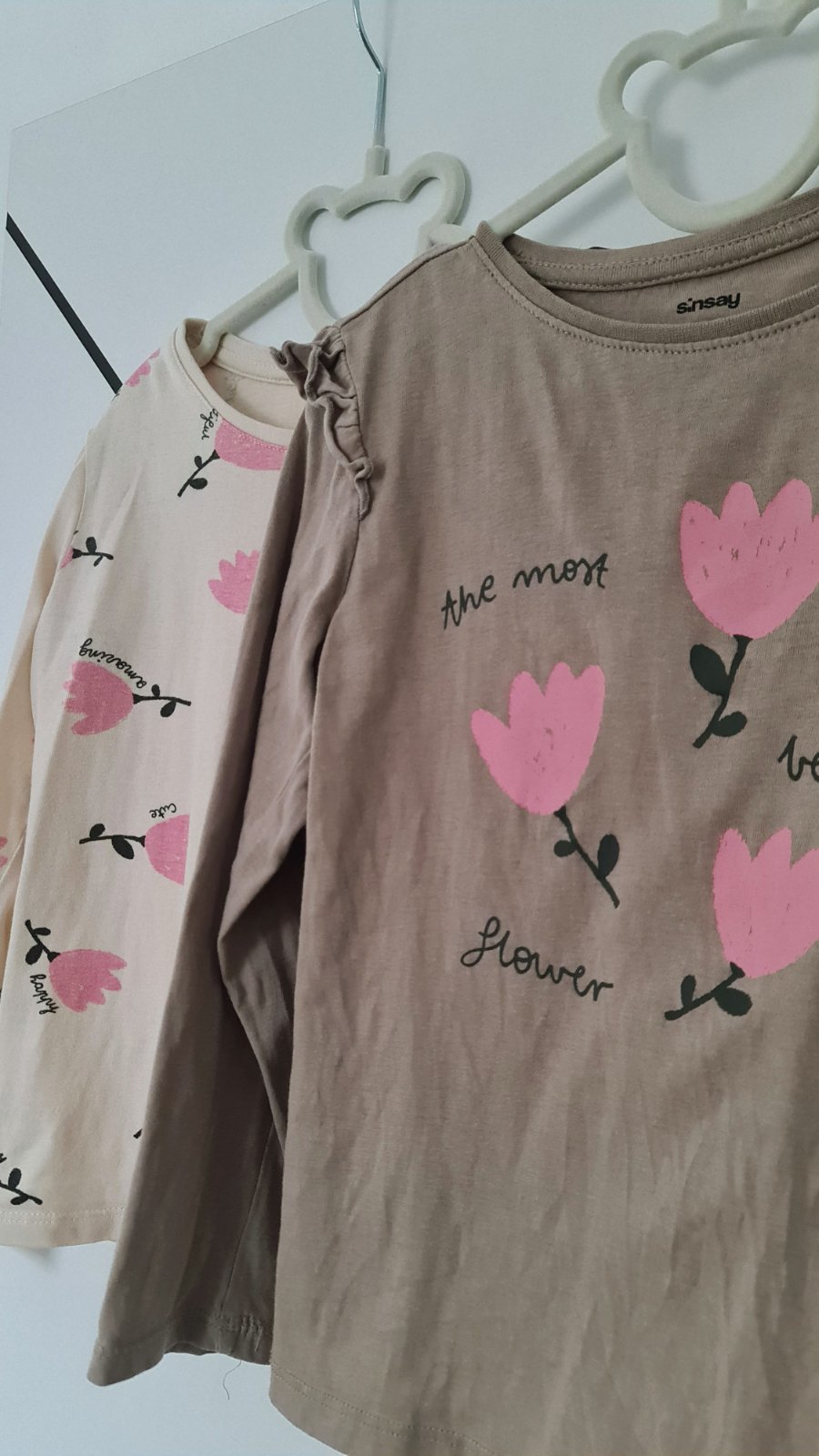 2x Tričko s dlhým rukávom, potlač tulipány, farba - krémová, ružová, hnedá, veľkosť- 128, značka Sinsay.