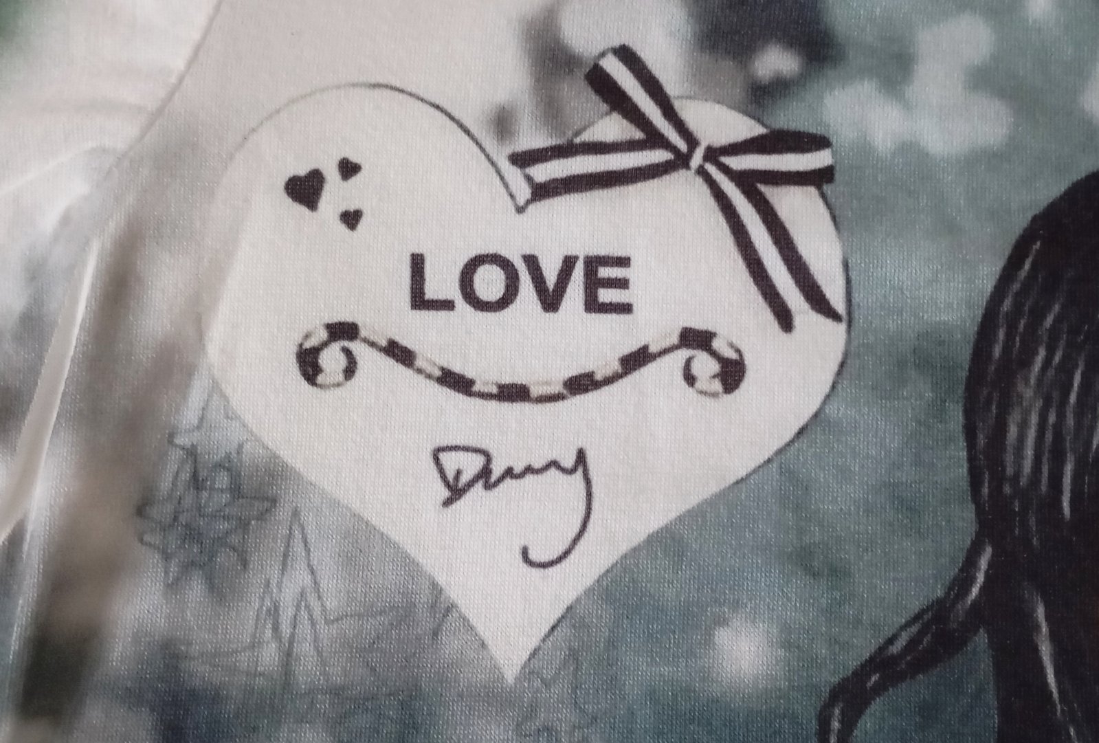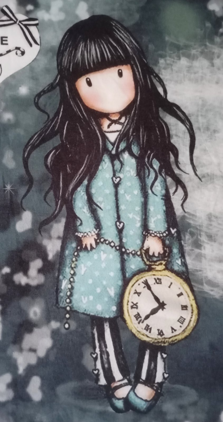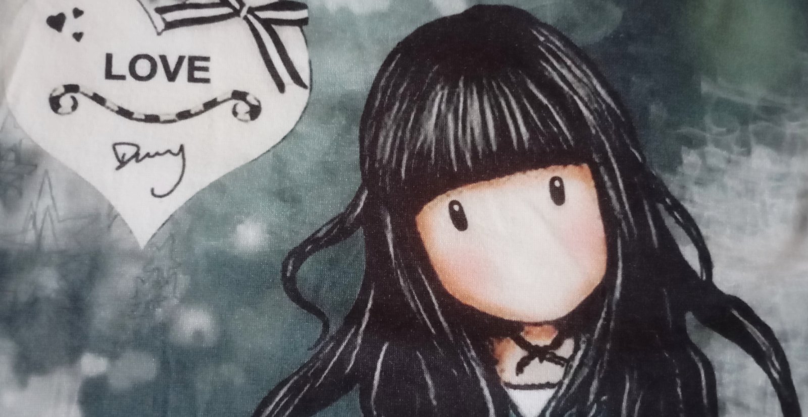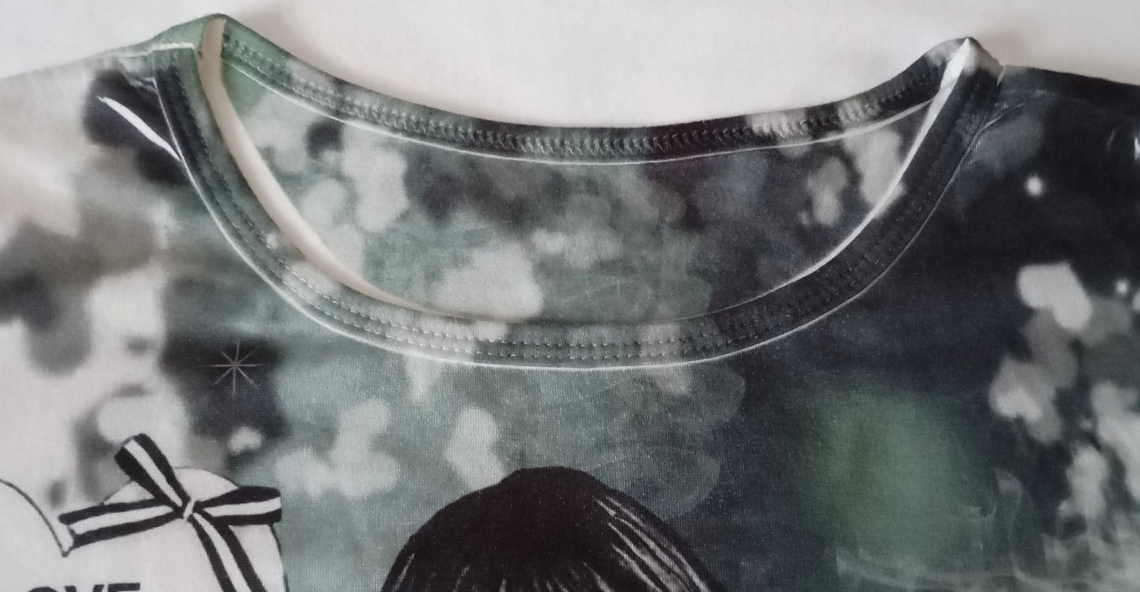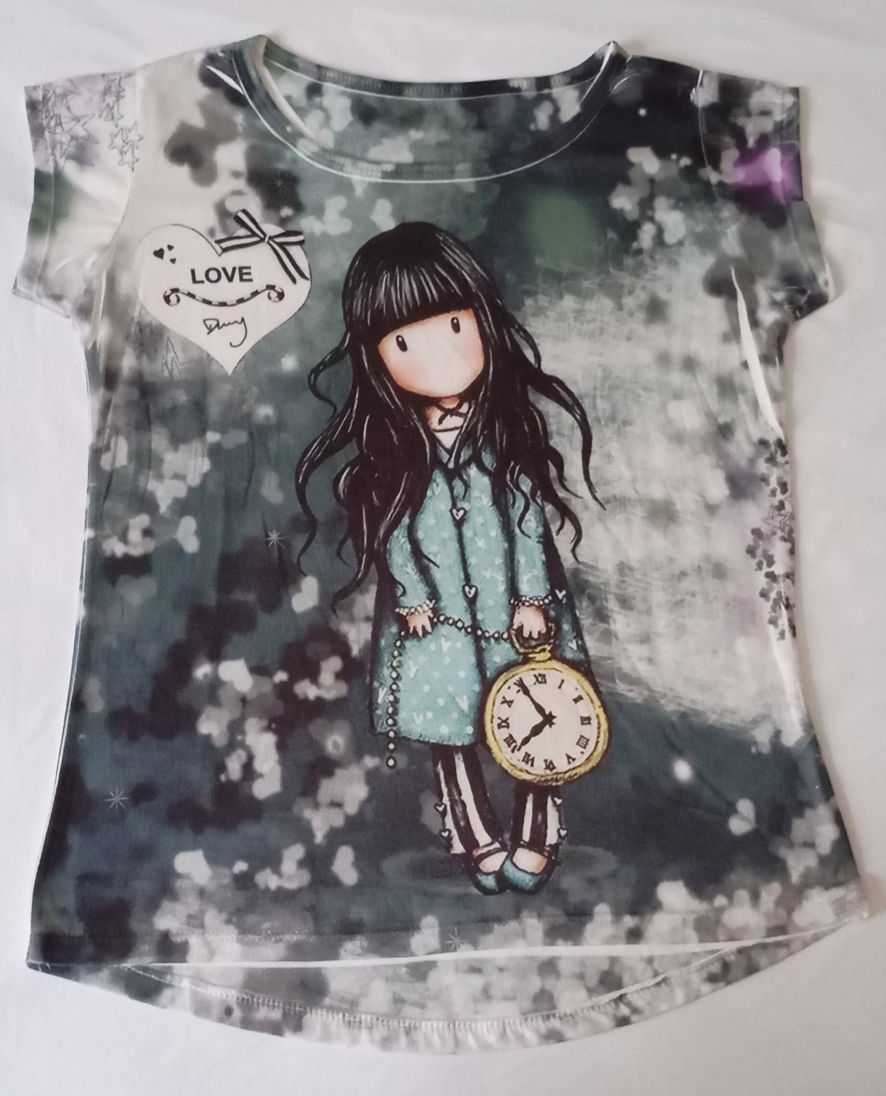 Jemné roztomilé tričko od značky Santoro (alebo Gorjuss) s farebnou potlačou na prednej strane a s čiastočne presvitajúcou bielou zadnou stranou.
