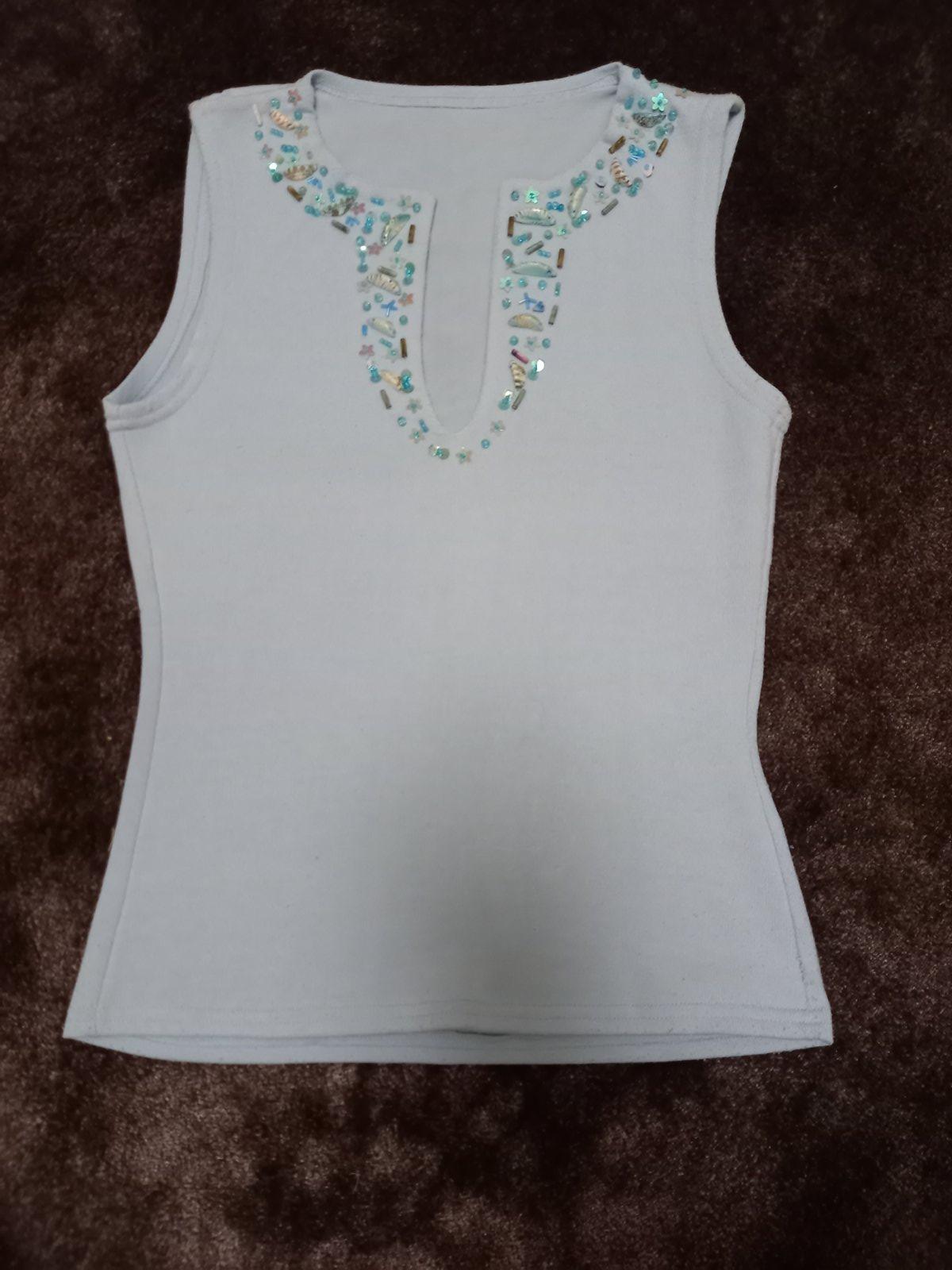 Ponukam modre pekne tricko, elasticke, kratsie, velkost S.