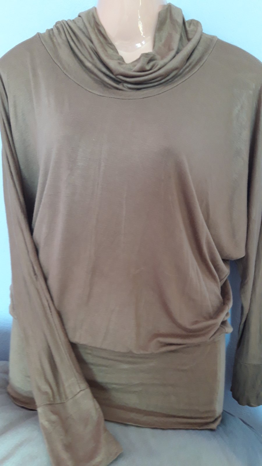 tričko s nariaseným rolákom v bledohnedej farbe,jemne raglanový rukáv
