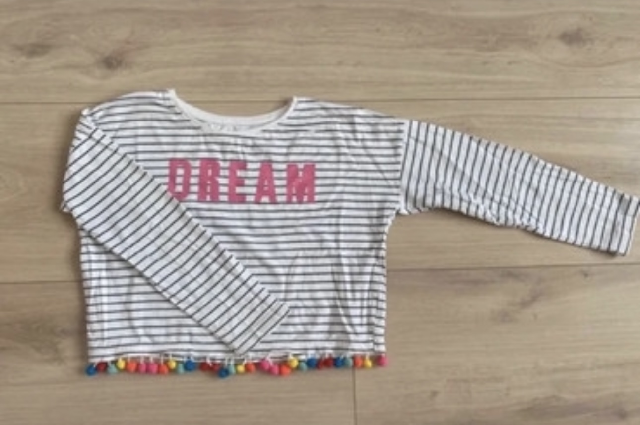 Predám dievčenské tričko 128. výborný stav. Dĺžka 54 cm. šírka 34 cm. rukáv od krku 53 cm.