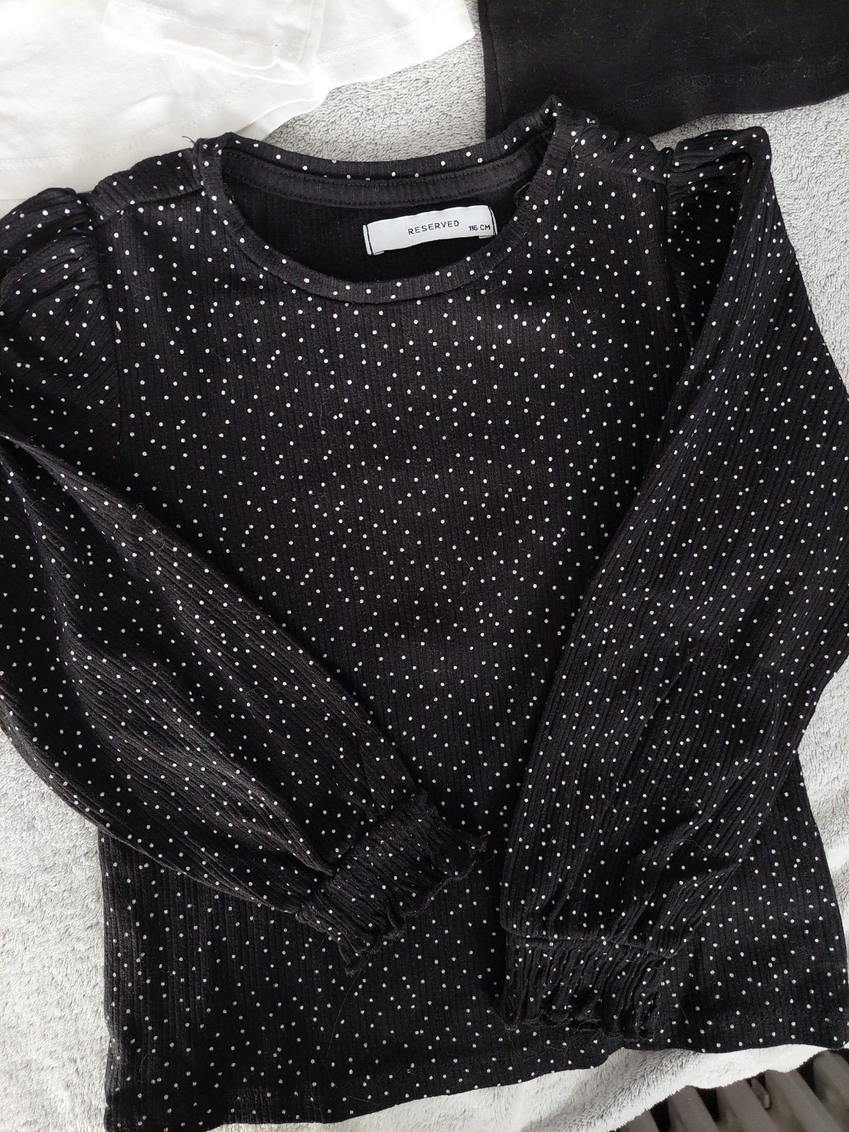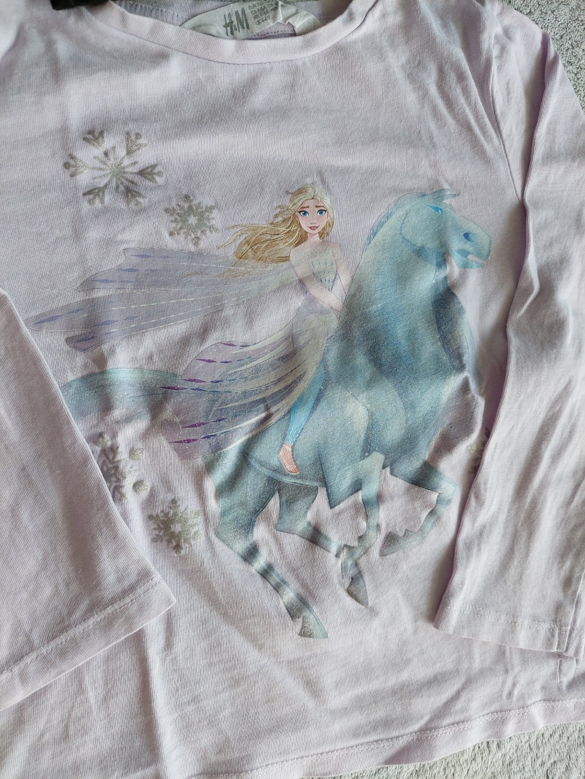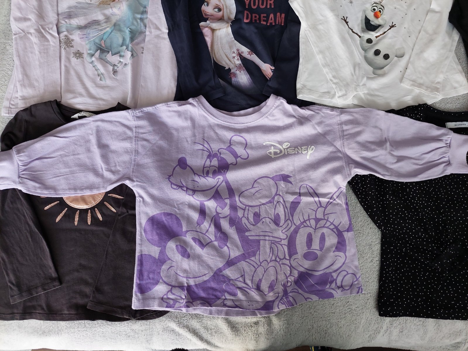 Veľmi pekný stav, vhodné do škôlky, niektoré oblečené minimálne, frozen, slniečko z H&M, čierny elastický rolák, fialové tričko s postavami Disney (na postave veľmi pekné,nieje vôbec široké ako sa zdá), čierne s bodkami reserved
