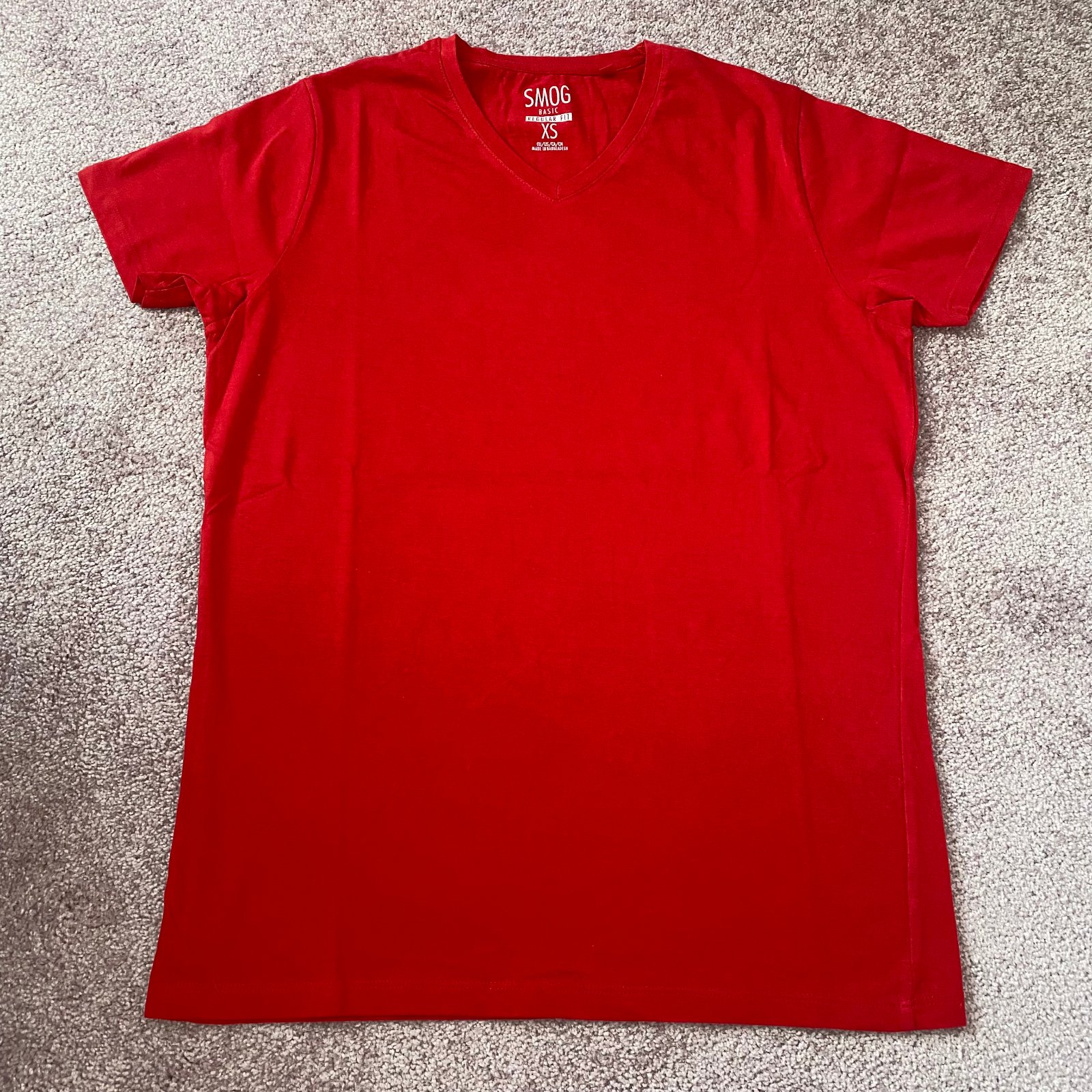 Klasické červené tričko s véčkovým výstrihom, v dobrom stave. Dĺžka je 69cm, šírka je 46cm,