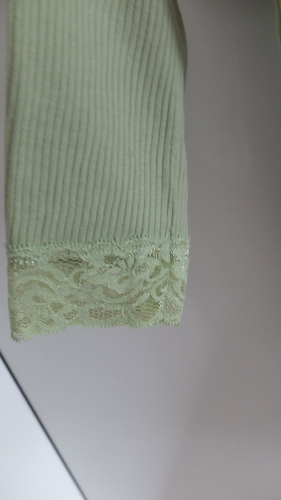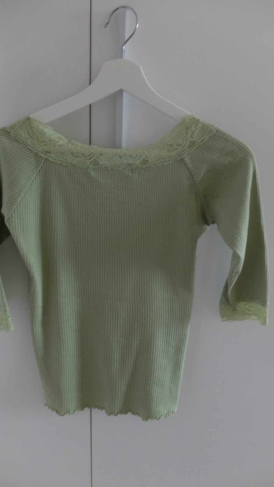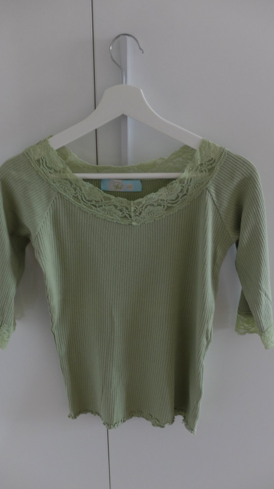 Jasnozeleny top s aplikaciou "vody" na prsiach s prijemneho, pohodlneho materialu. Velkost M, zn. ORSAY, nenosene.