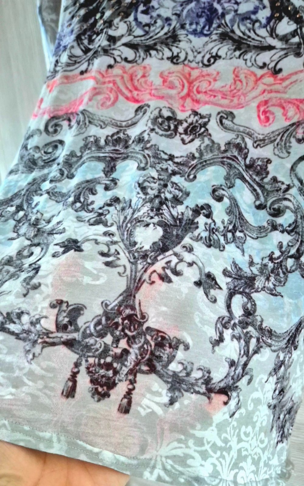 Zaujímavá blúzka Ukončená patentom v pase Original Voľný strih Jemnucky materiál Zdobená kamienkami Žiaden nechýba Top stav