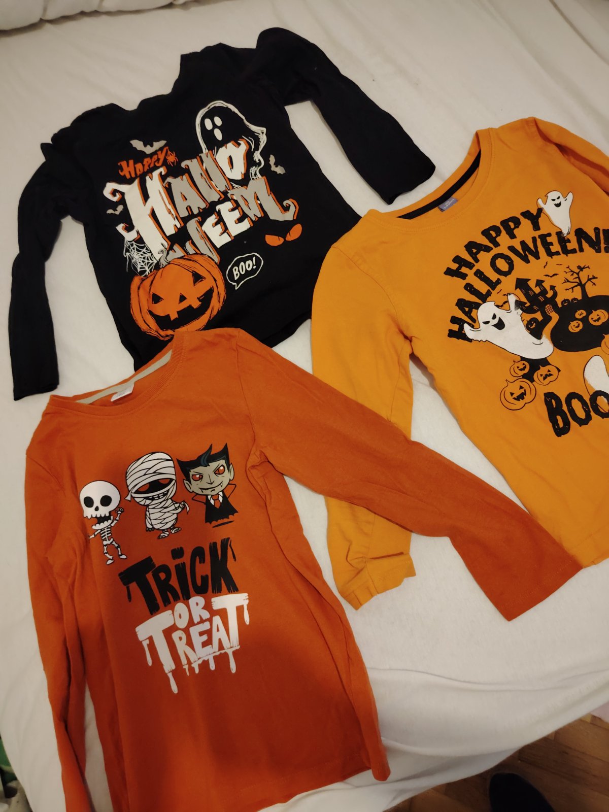 Tri krásne tričká na toto obdobie. Čierne a hnedé takmer nové, nenosené, oranžové mierne nosené. Predaj a cena spolu. Dopodopo a little kids.