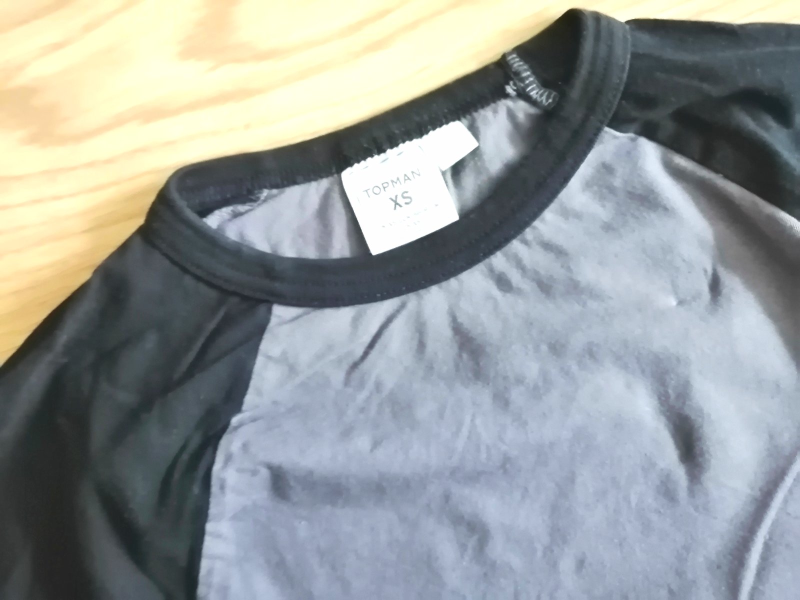 Kvalitné bavlnené chlapčenské /pánske tričko s dlhým raglánovým rukávom zn. Topman (predáva Sinsay), v kombinácii čiernej a sivej farby, dolu tvarované.